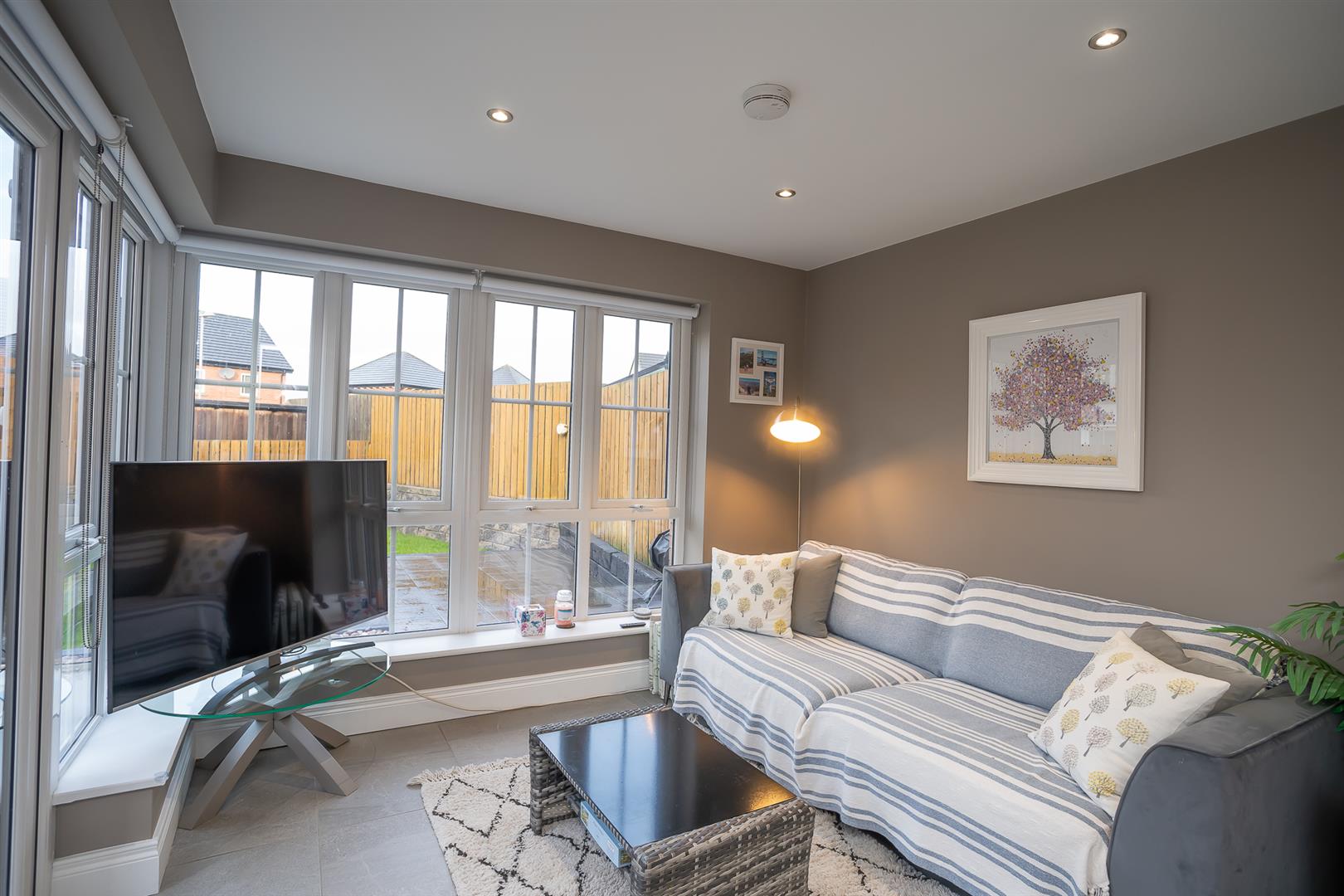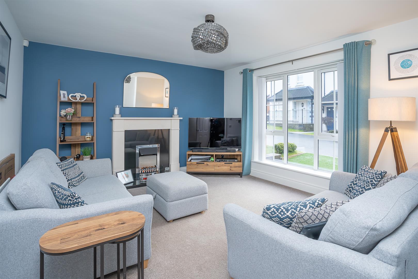 Spacious living room with feature electric fire