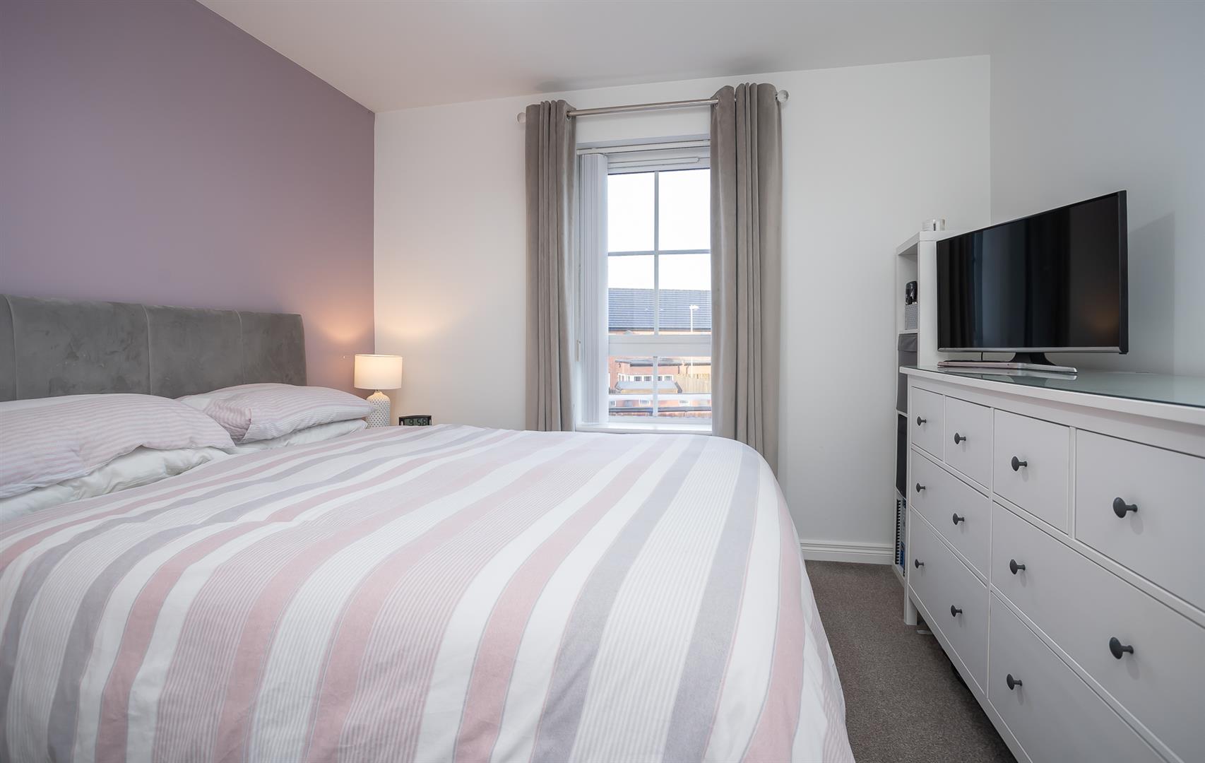Spacious second bedroom, tastefully decorated with built in storage cupboard.