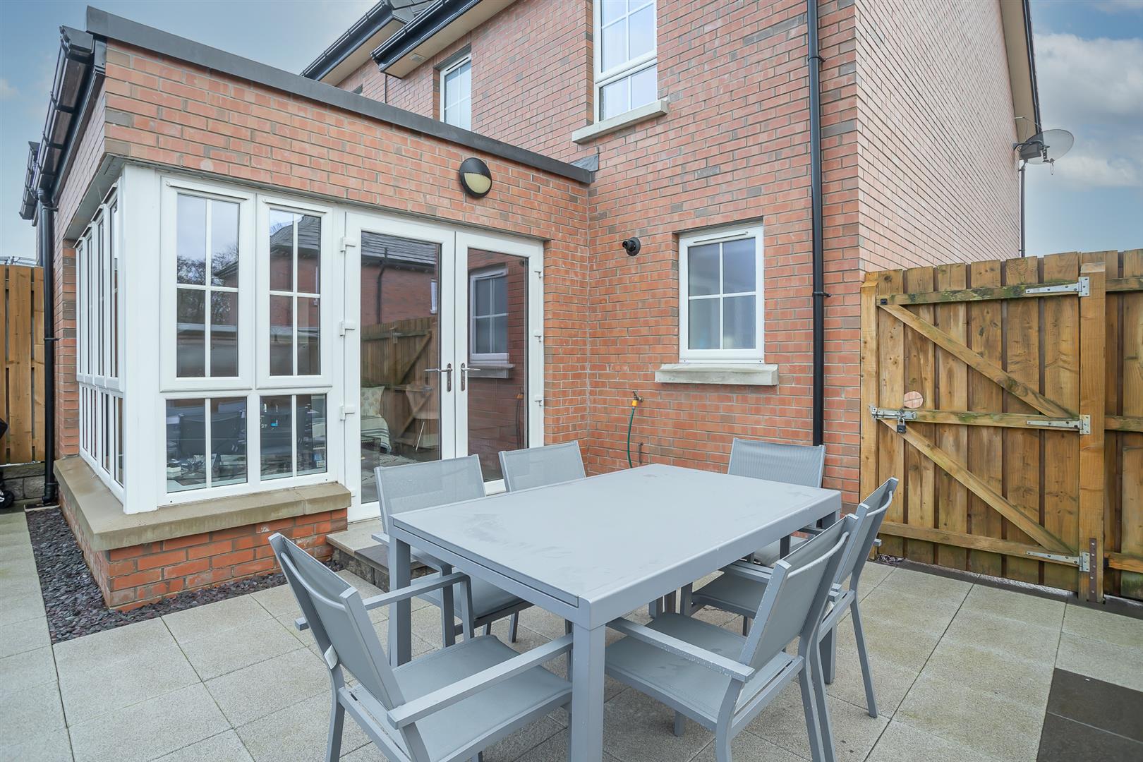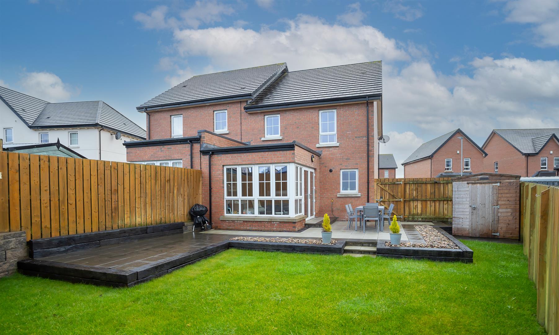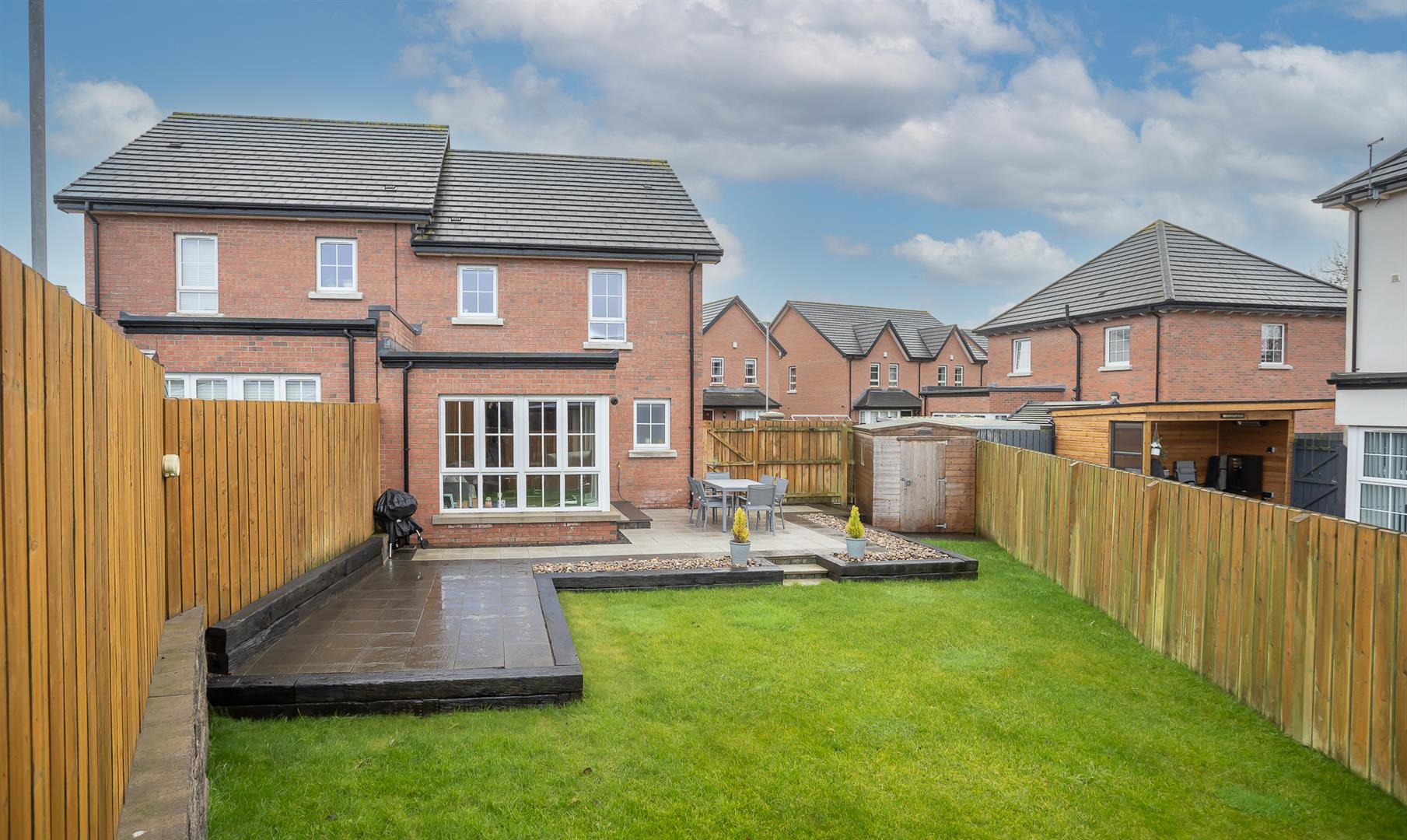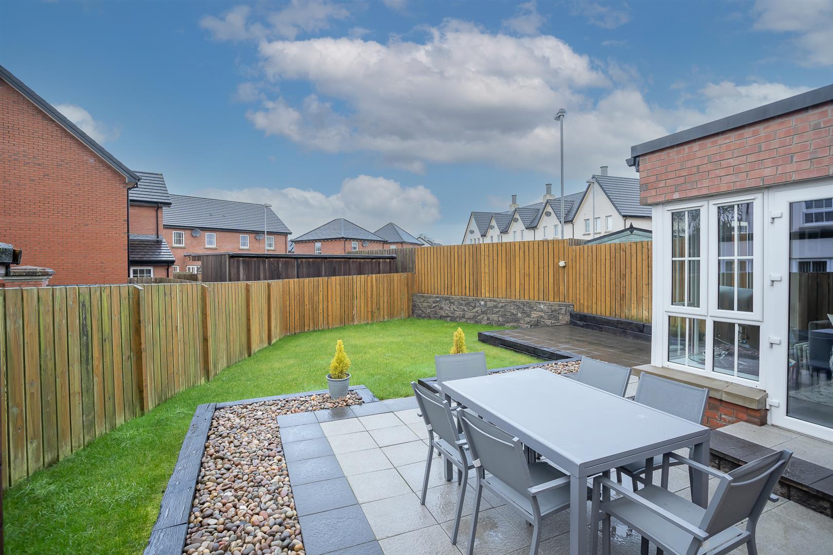Rear garden laid In lawn with extended patio area, ideal for outdoor entertaining
