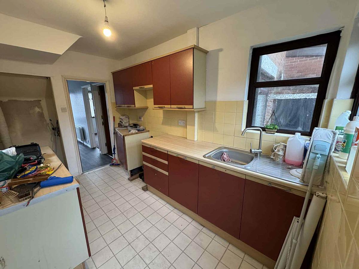 Single drainer stainless steel sink unit and mixer tap. Good range of built-in high low level units. Laminate worktops. Fitted breakfast bar. Part tiled walls. UPVC double glazed back door.