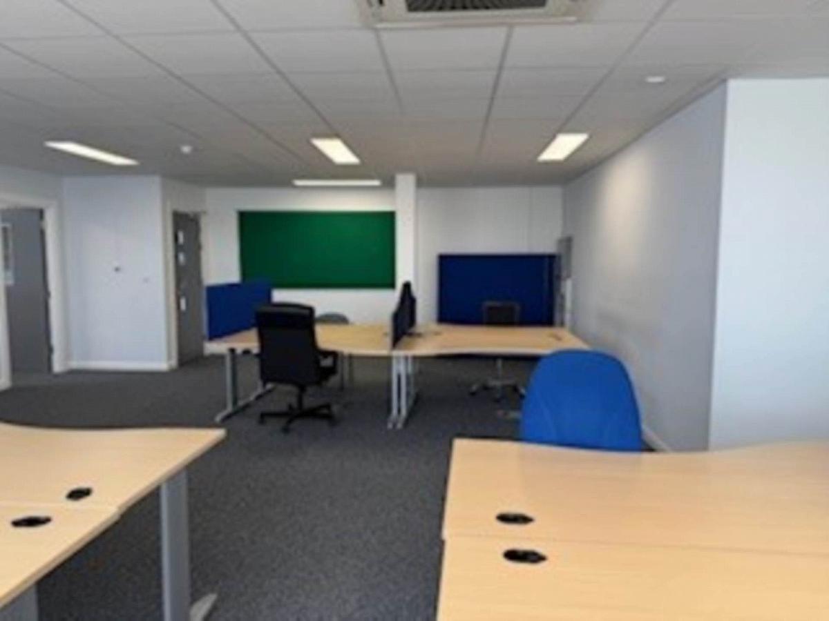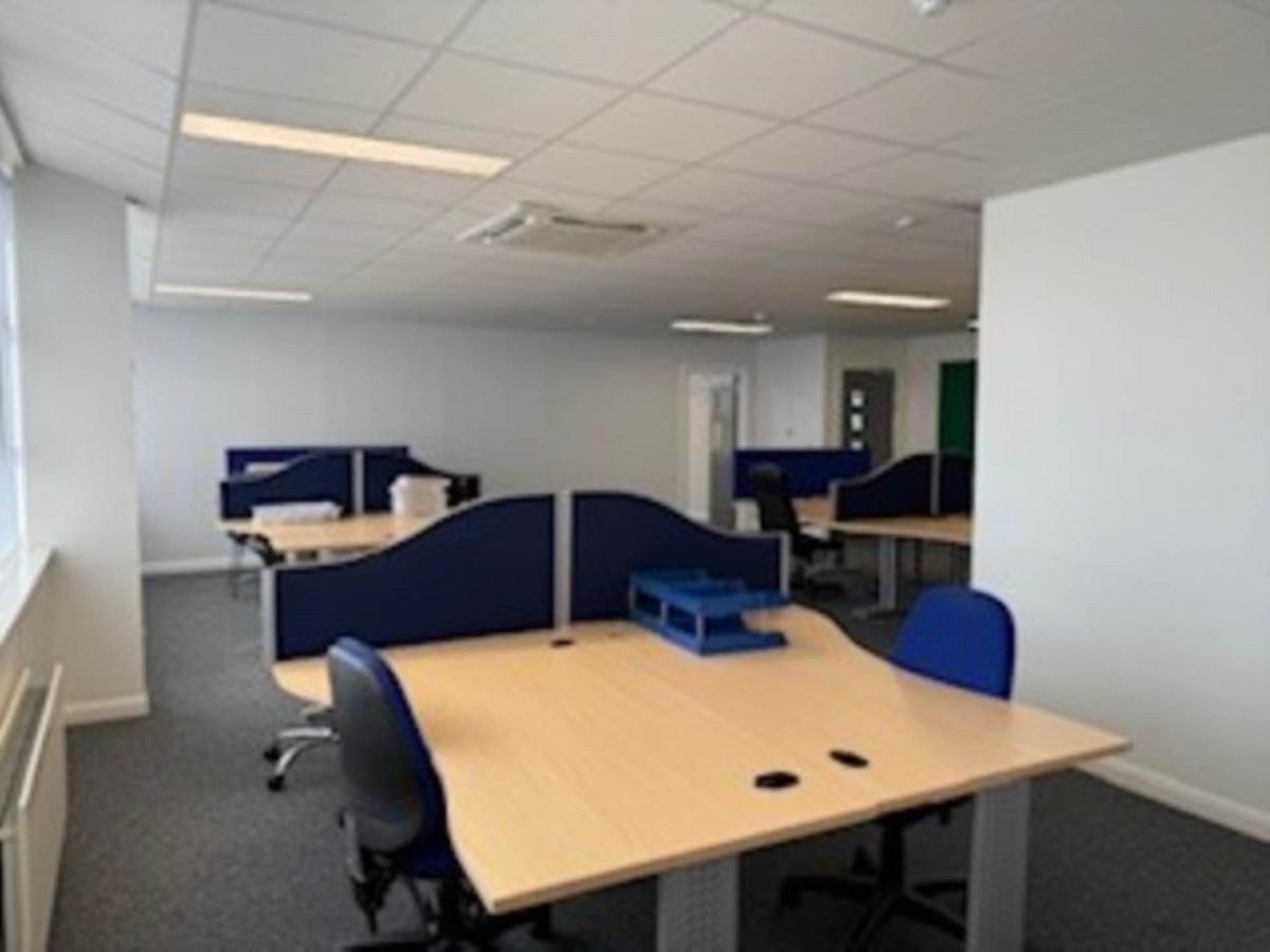Offered for rental are first floor premises suited to a variety of uses and which comprise main office which can be sub divided to suit a tenants individual needs, separate board/training room and shared kitchen with own wc facilities. Gas central heating and air conditioning with parking to front of building.