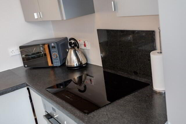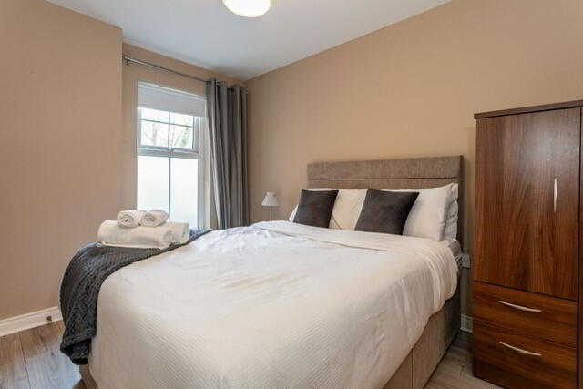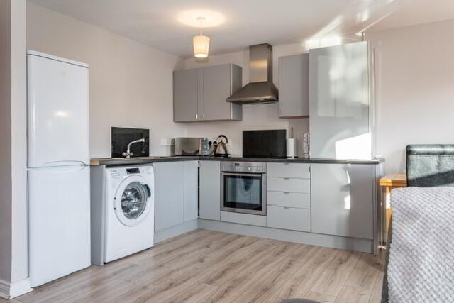 The property offers two double bedrooms, including a master bedroom with en-suite, along with a modern open-plan kitchen, living, and dining area.