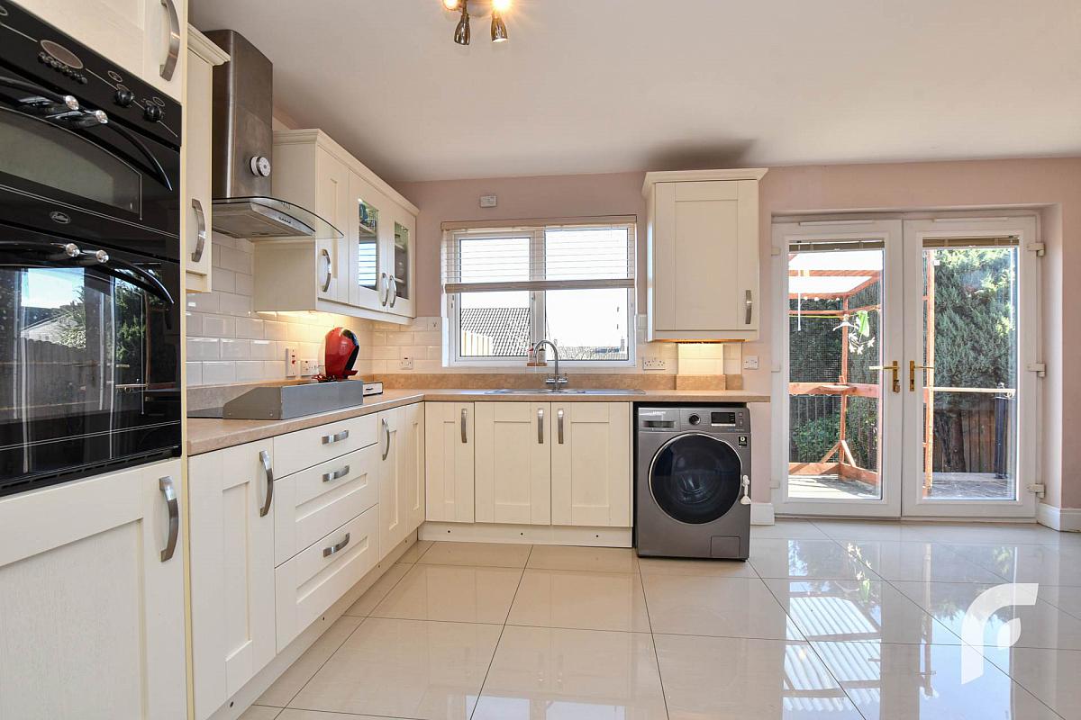 Internally, the property is over three floors and comprises hallway through to spacious living room, open plan kitchen/dining room, four well proportioned bedrooms (one with ensuite), x2 storage cupboards, and modern family bathroom. Externally, to the front of the property is a block paving driveway for parking multiple vehicles and a front lawn. To the rear is a generous enclosed garden with grass lawn and a patio area. Further desirable attributes include eves storage in top bedroom and Gas fired central heating.