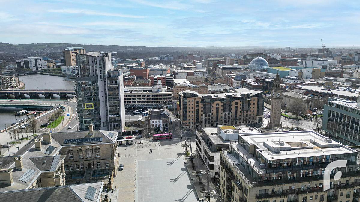 Queens Square overlooks Custom House Square and offers views to the close by Lagan River, making it a prime spot for young professionals who will likely benefit from short walking distance to their place of work.