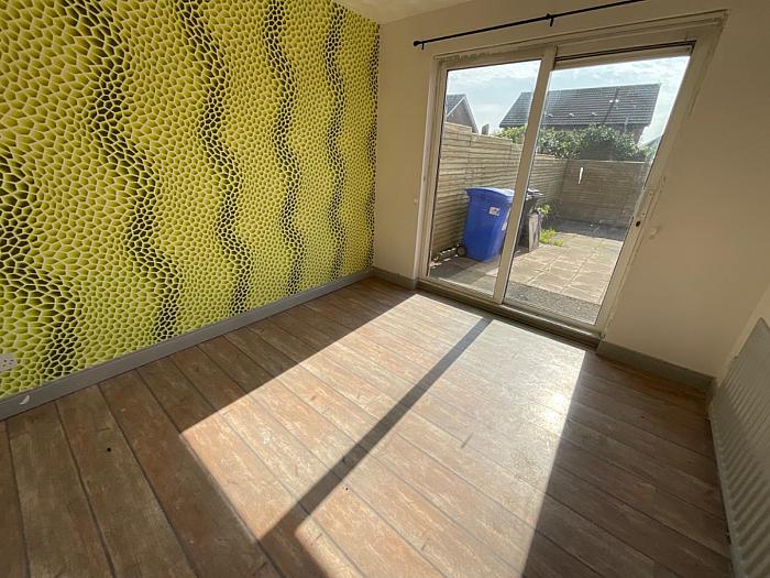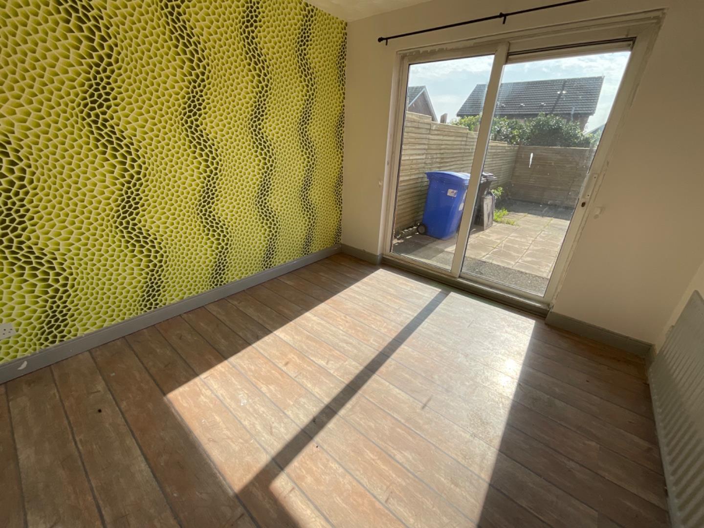 Wood laminate flooring, panelled radiator, sliding doors leading to rear yard