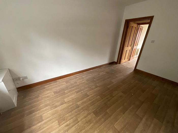 Hardwood front door, wood laminate flooring, enclosed electricity meter, panelled radiator, access to first floor