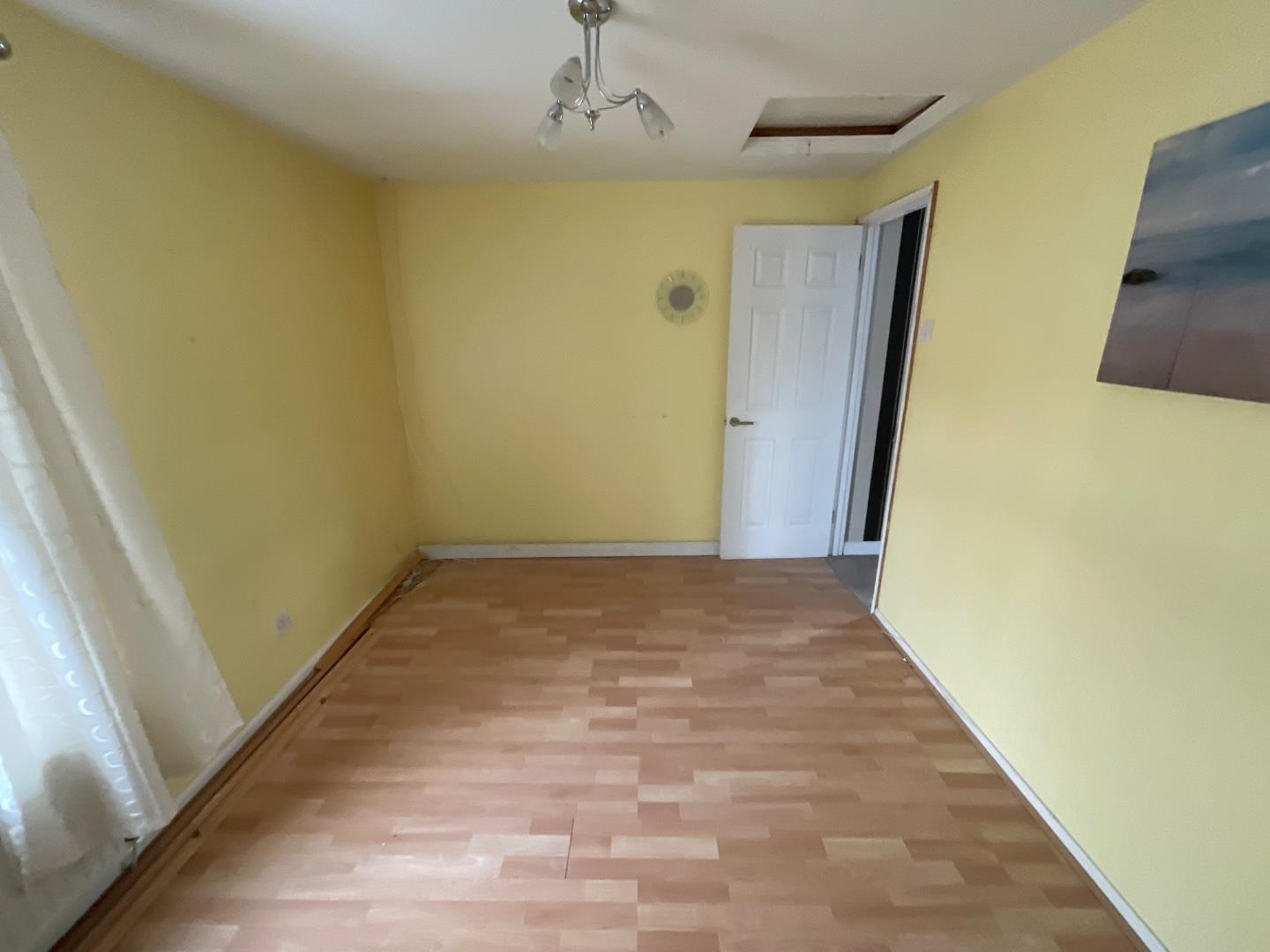 Wood laminate flooring, panelled radiator, access to roof space