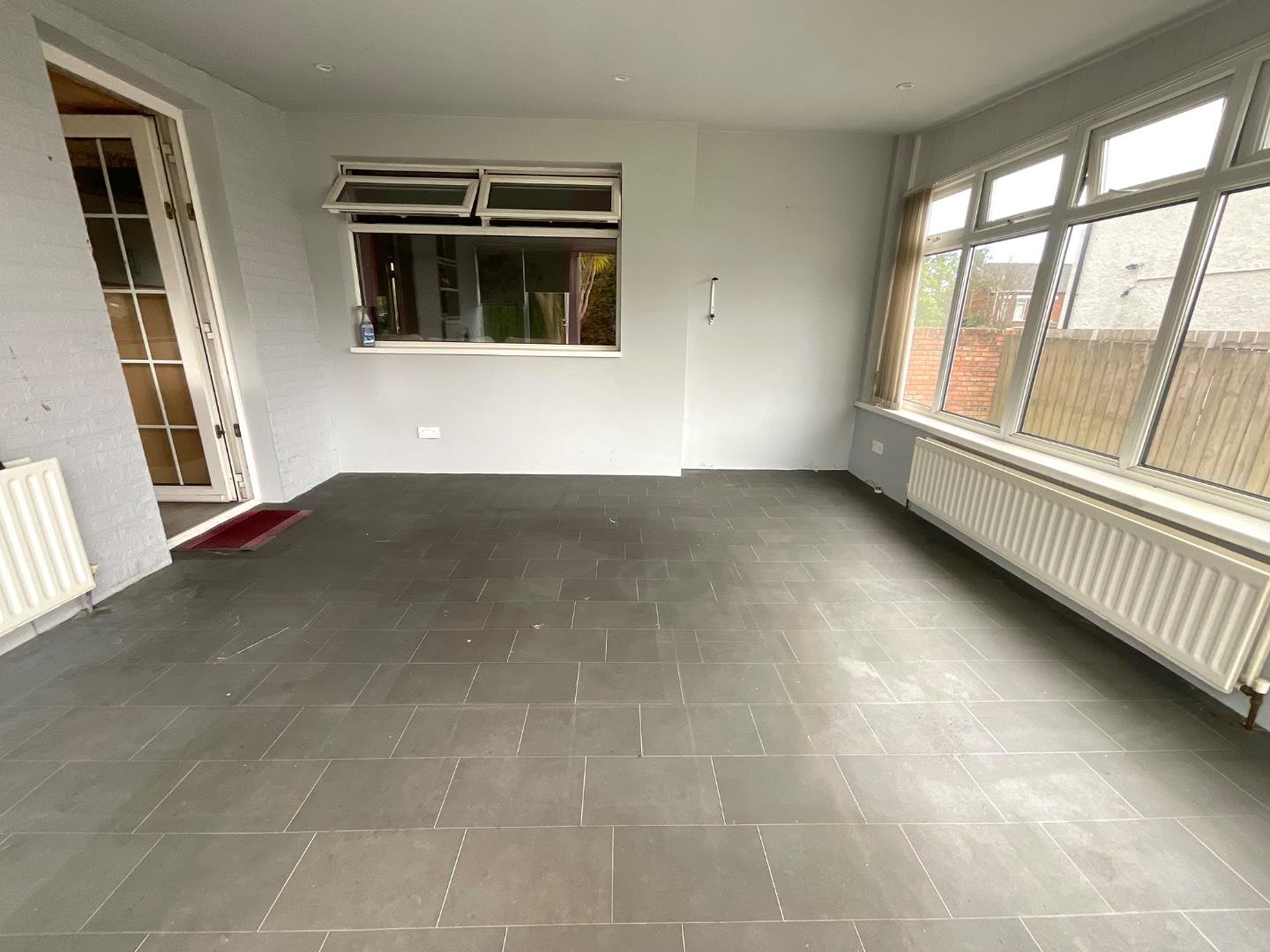 Recessed lighting, double panelled radiator, double patio doors leading to rear garden