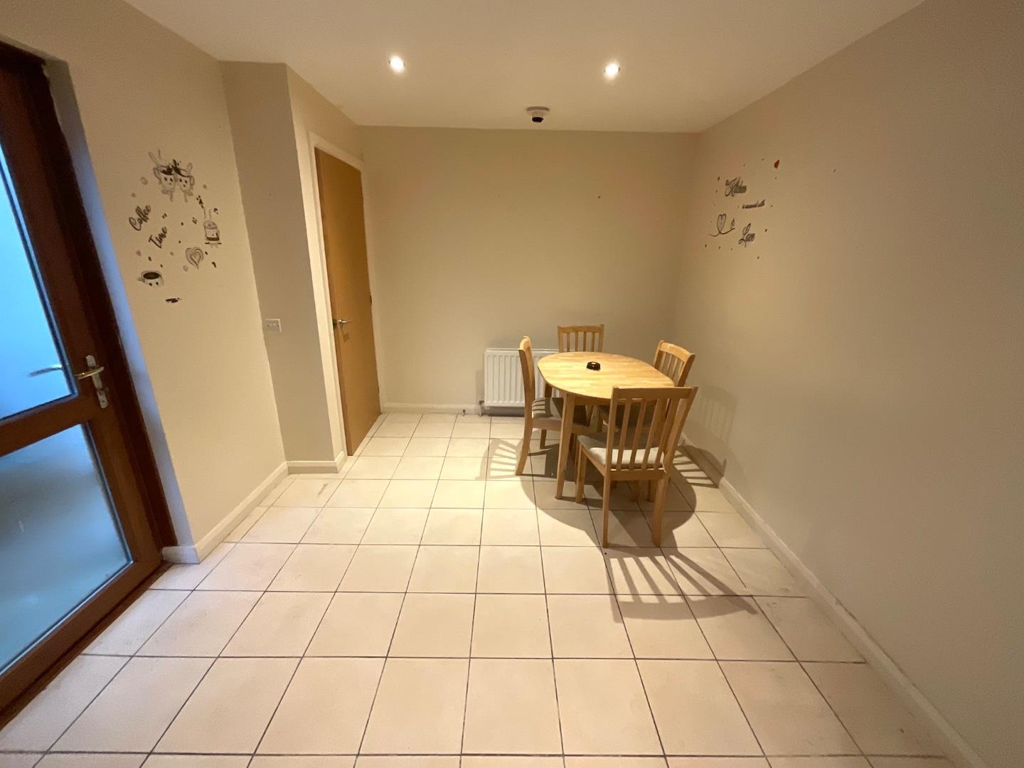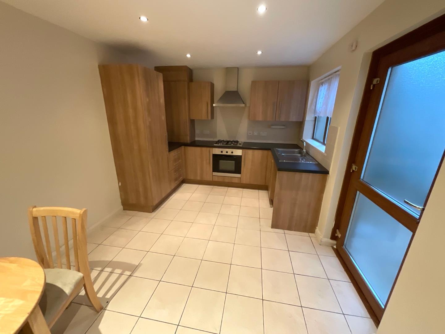 Modern fitted kitchen with a wide range of high and low level units, tiled splash backs and contrasting worktops, recessed lighting, stainless steel bowl and a half sink and drainer with mixer taps, integrated oven and hob with extractor hood, plumbed for a washing machine, enclosed gas boiler, fridge freezer space, ample dining space, double panelled radiator, tiled flooring, access to rear yard