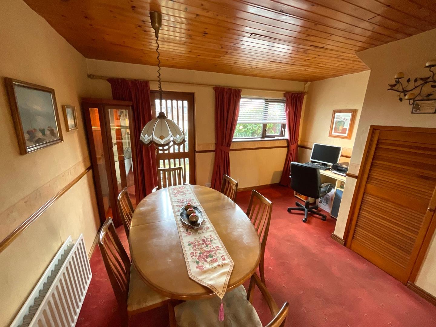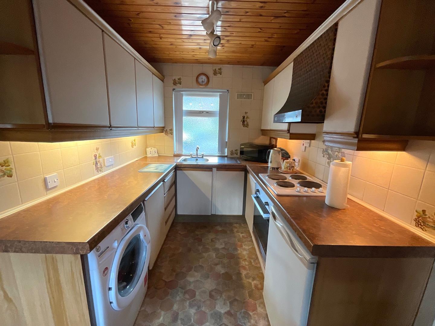 Fitted kitchen with both high and low level units, tiled splash backs and contrasting worktops, stainless steel sink and drainer, integrated oven and hob with extractor hood, plumbed for a washing machine, under stair storage, generous dining area, double panelled radiator, access to rear garden