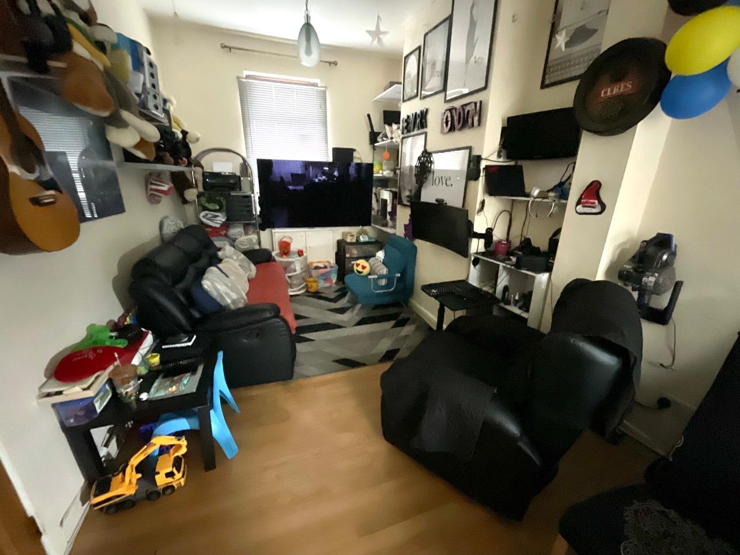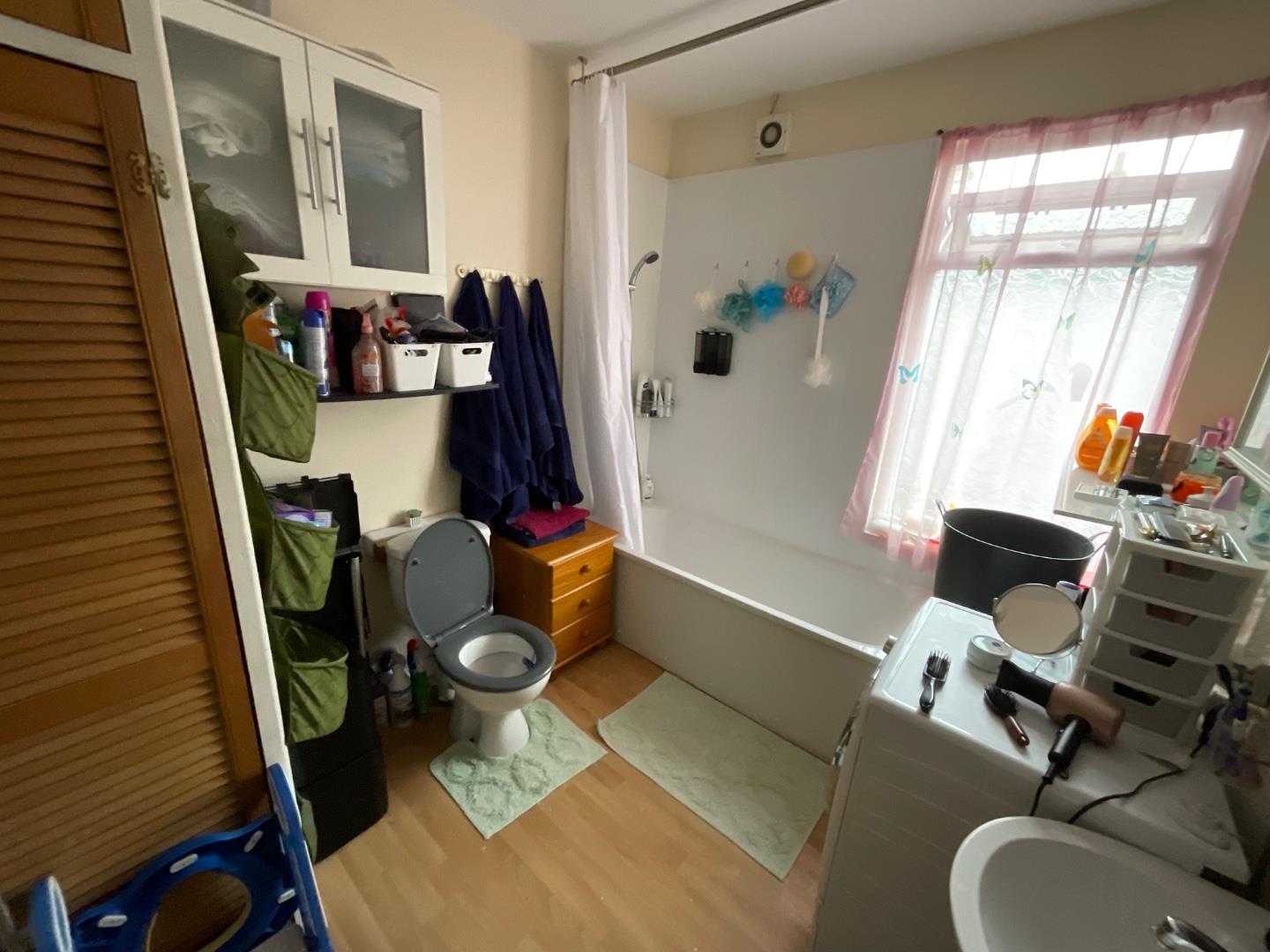 Dual aspect windows allowing for plenty of natural light, wood laminate flooring, enclosed electricity meter