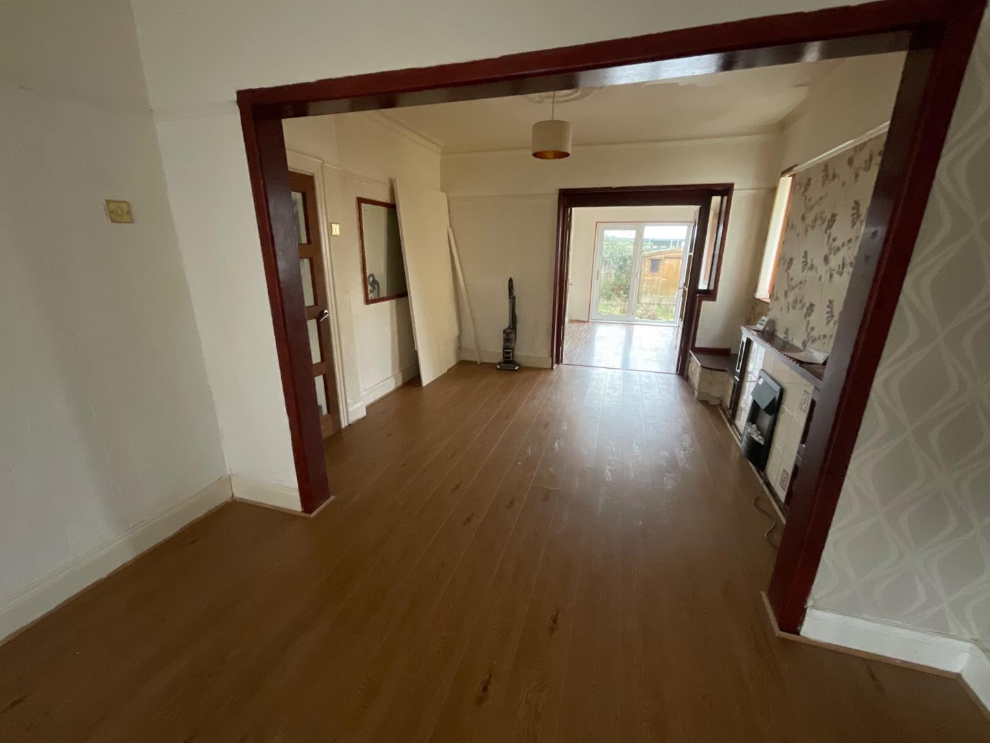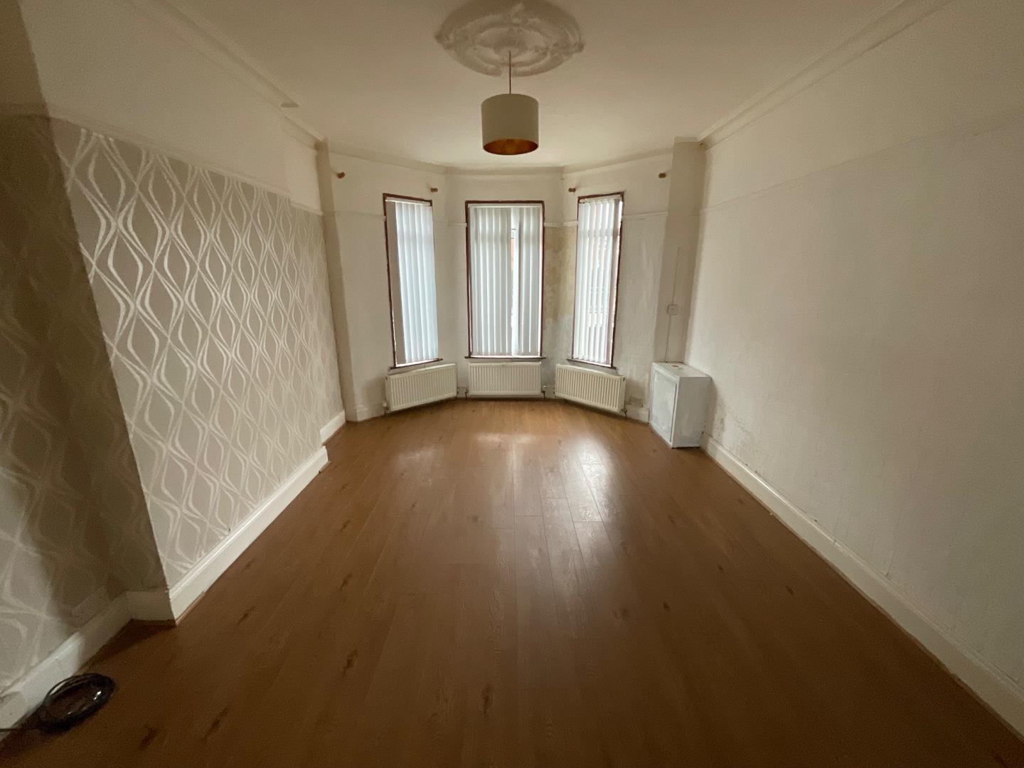 Into bay, wood laminate flooring, 3 double panelled radiators, enclosed electricity meter, electric fire inset