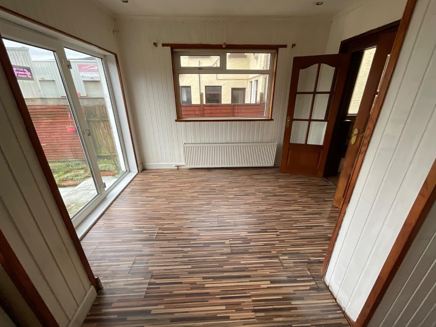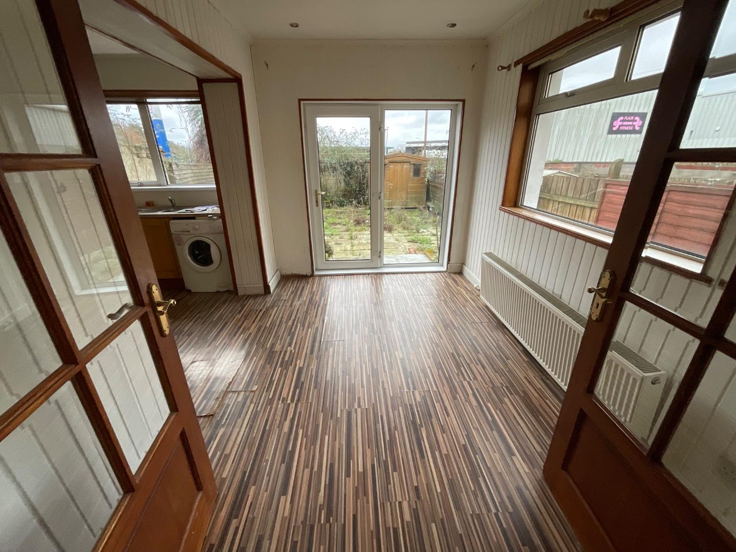 Double panelled radiator, patio door leading to rear garden