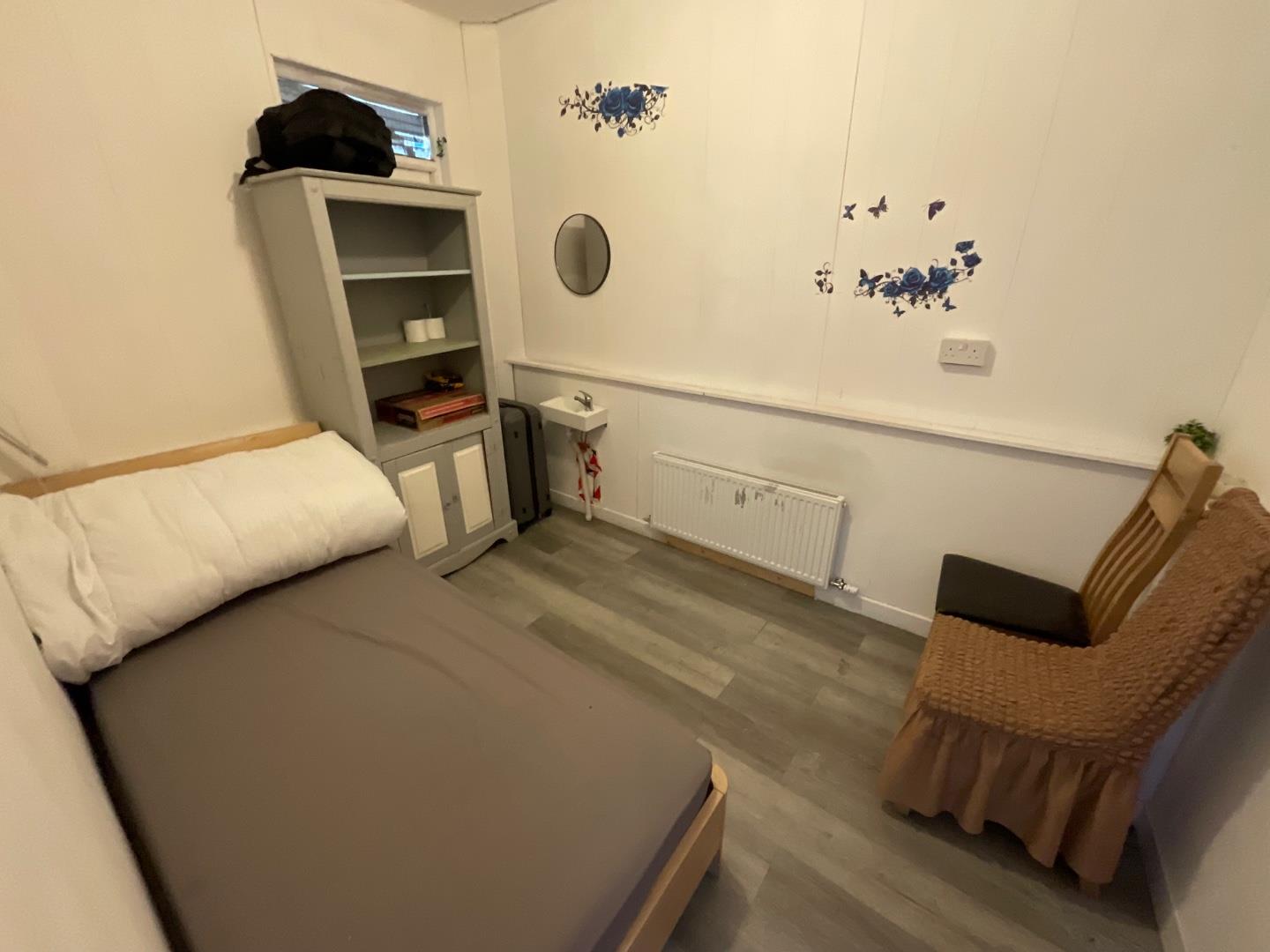 Wood laminate flooring, panelled radiator, fire escape access
