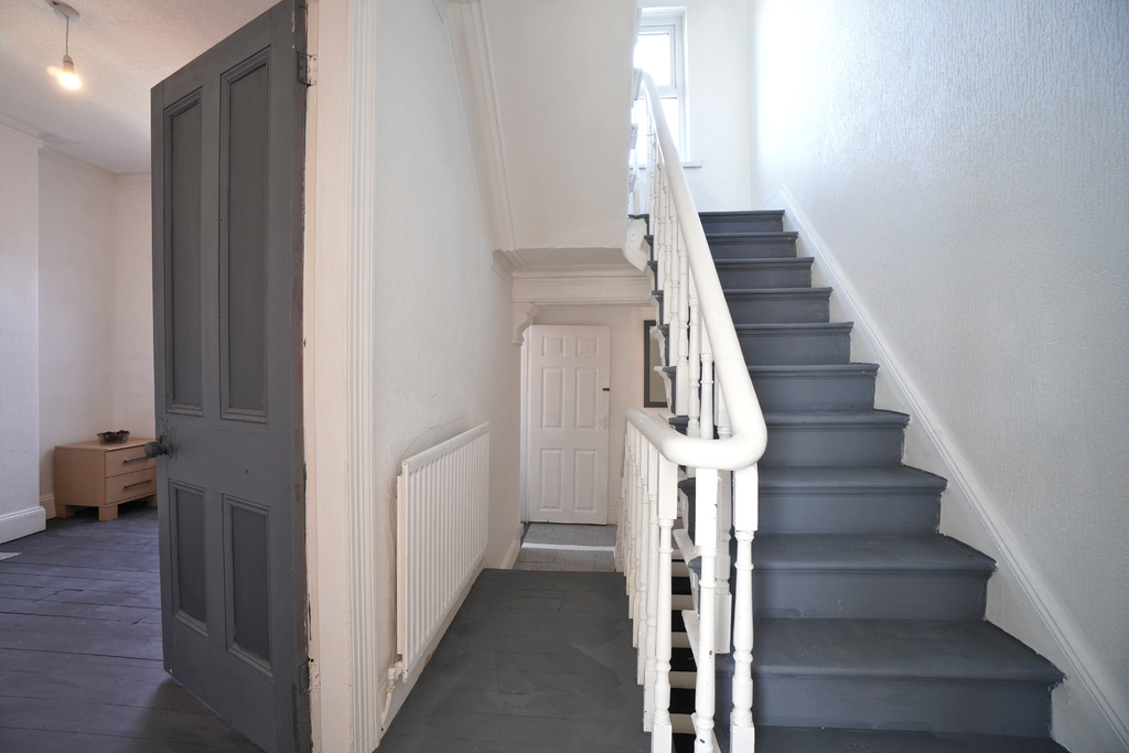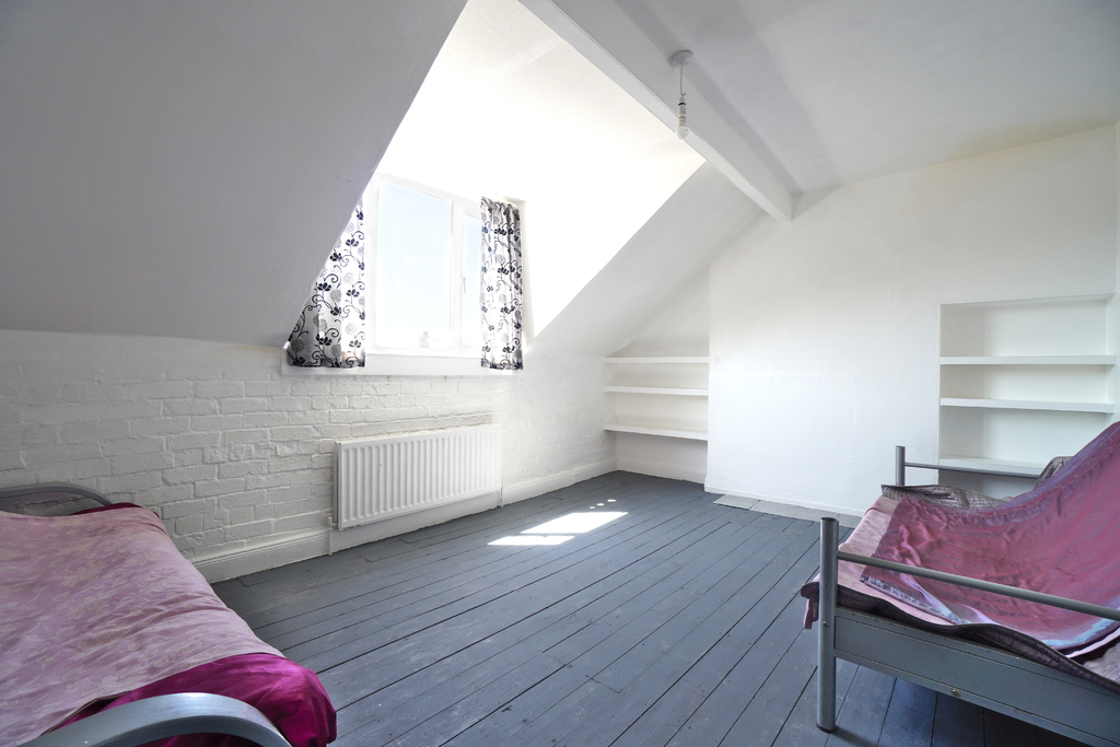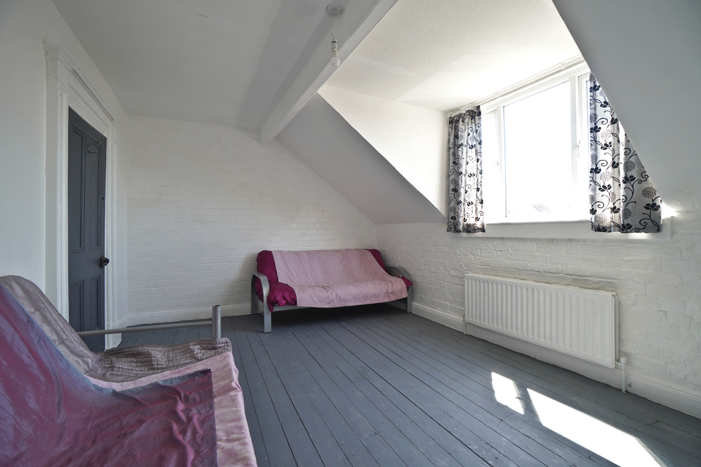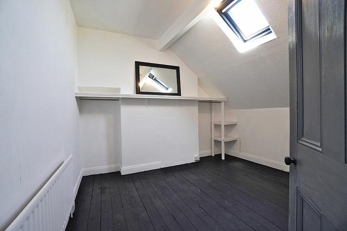 Wooden banister, Wooden floor, uPVC double glazed window, Access to roof-space.