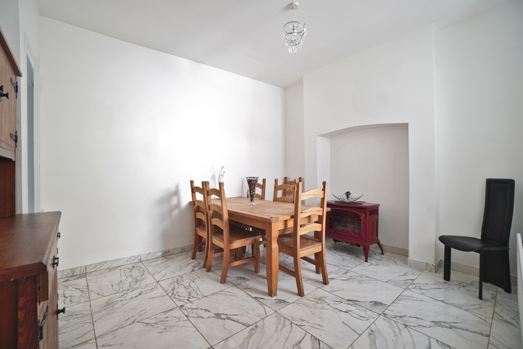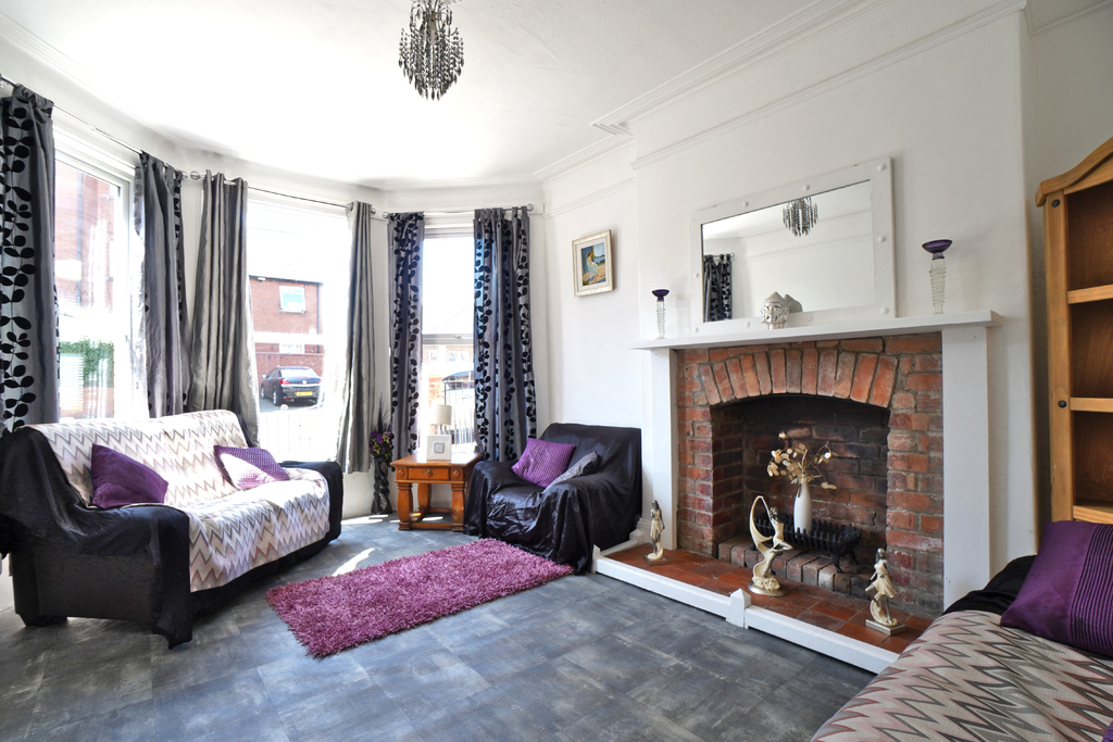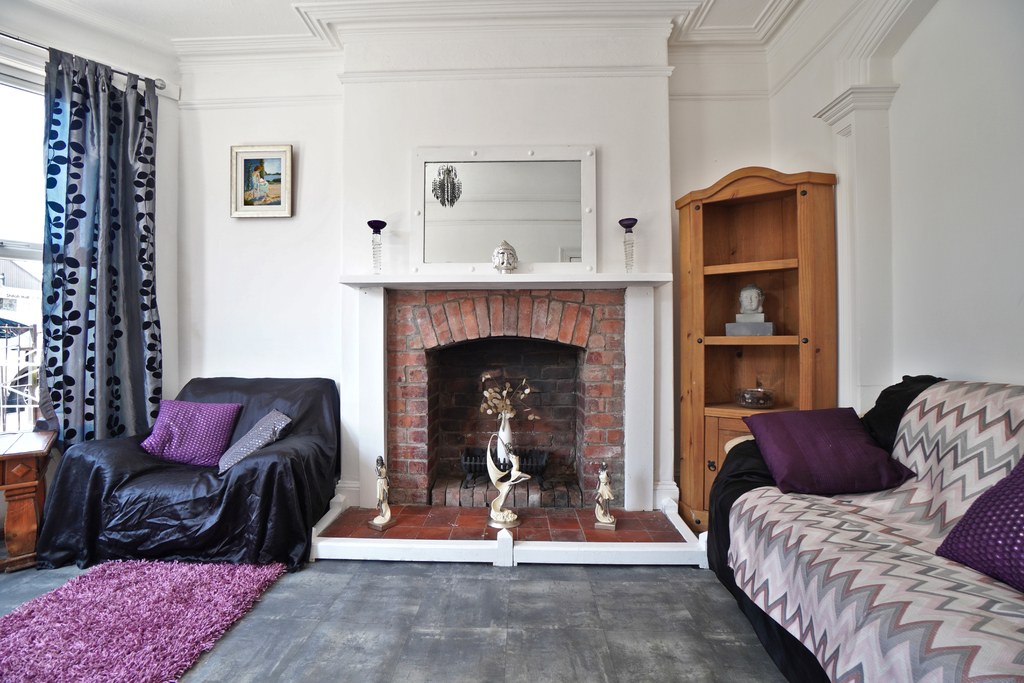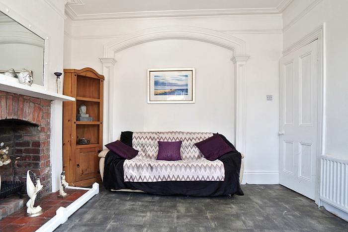 Vinyl floor, Tiled hearth, Brick fireplace, Double panel radiator, 3 x uPVC double glazed windows, Wooden door.