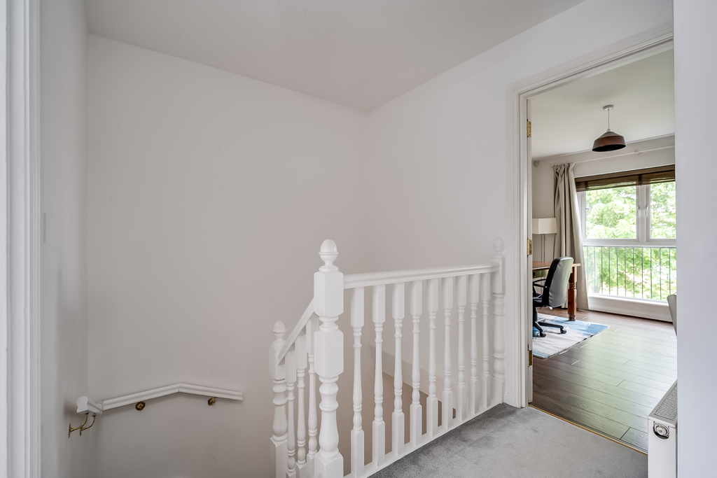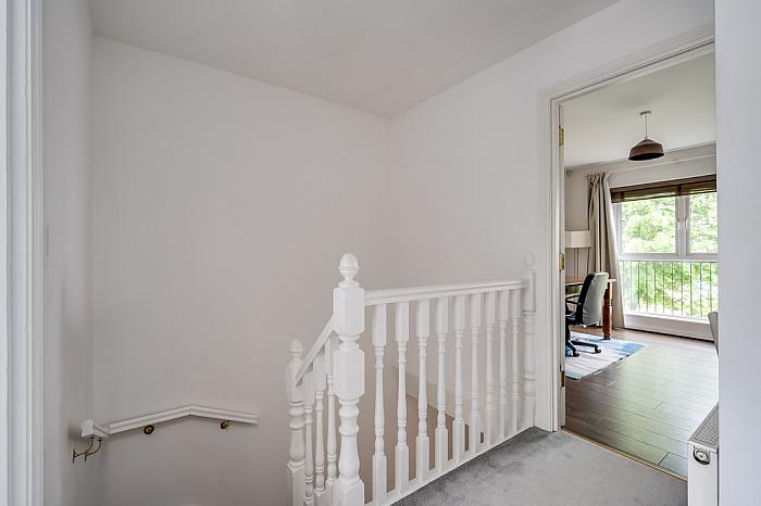 Fitted carpet, Bannister, Single panel radiator, Access to roof-space via loft ladder, Storage cupboard with single panel radiator.