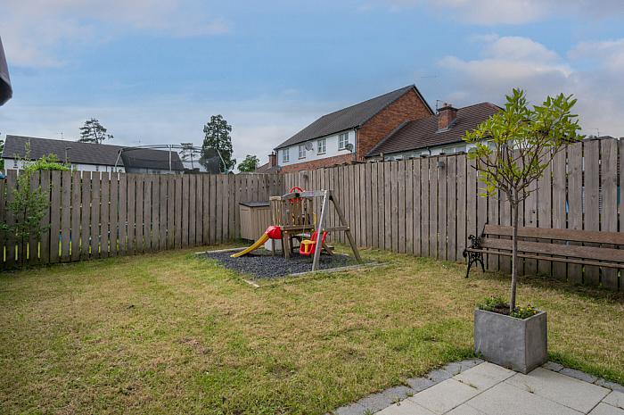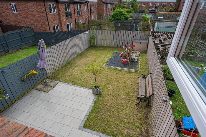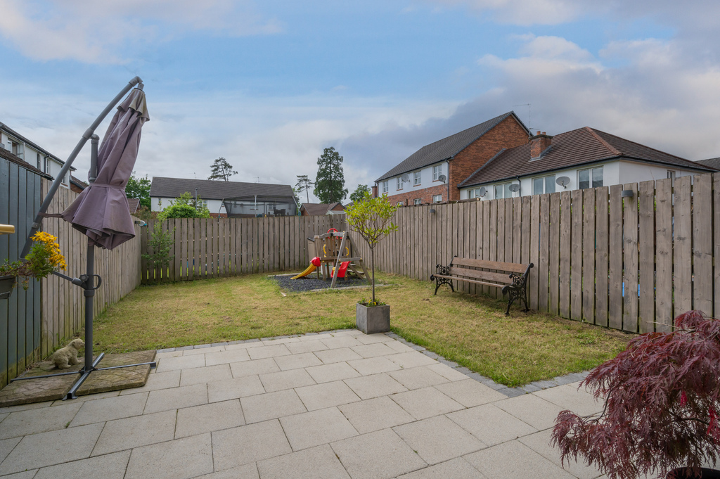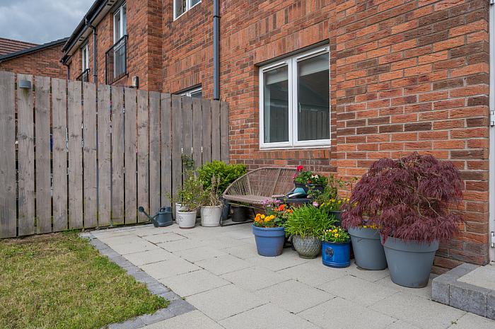 Paved patio, Lawn, Timber fence, Outdoor socket.