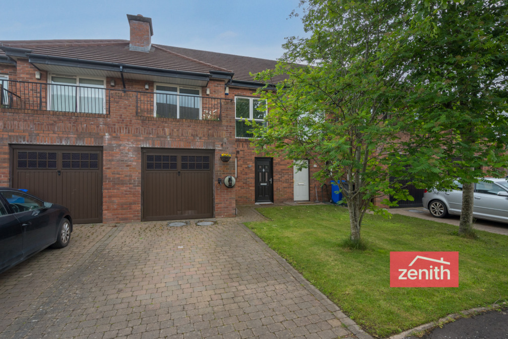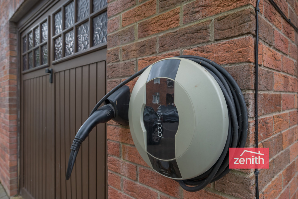 The inviting lounge boasts a charming sandstone effect fireplace and direct access to a balcony, providing a perfect spot for relaxation and enjoying the view. An integral garage includes a utility area, offering ample storage and practicality, while an electric vehicle charging point makes this home ideal for eco-conscious buyers. Security is a priority with a state-of-the-art alarm system in place.