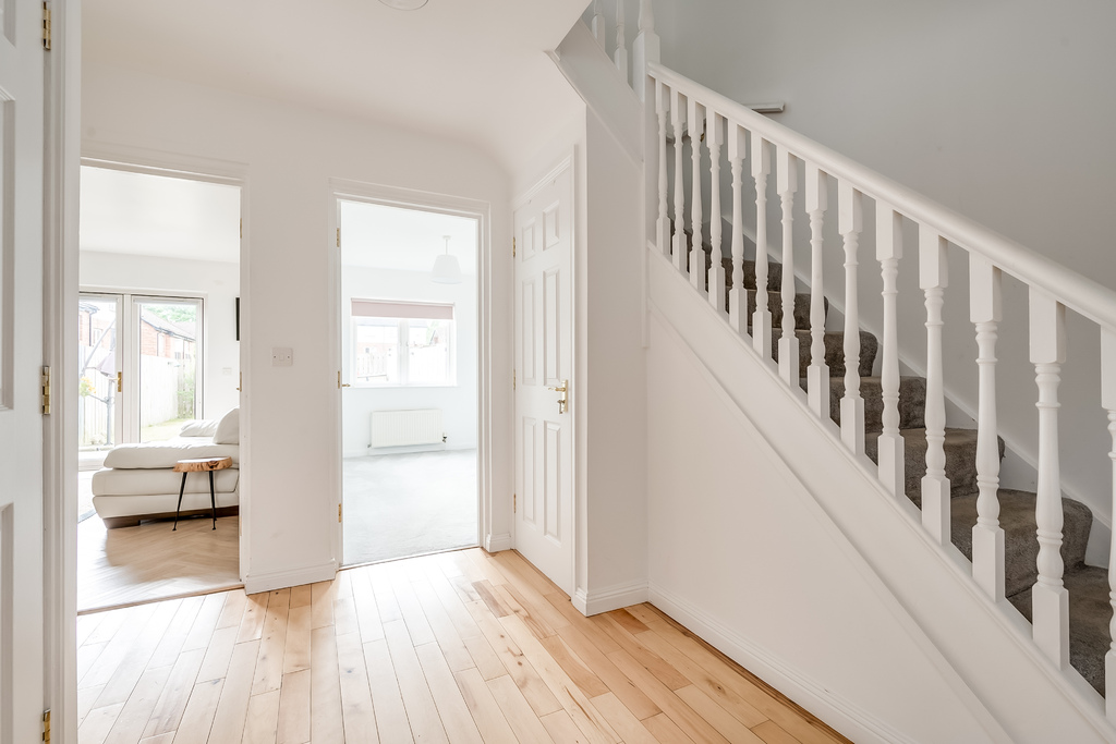 uPVC Front door, Solid wooden flooring, Double Panel Radiator, Security alarm panel, Under-stair storage cupboard, Additional Storage cupboard.