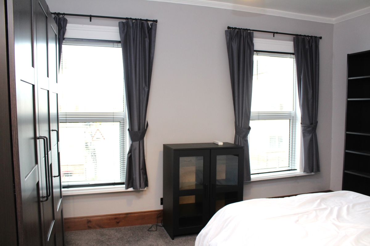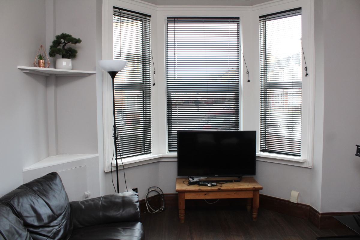 Bay window, laminate wood effect flooring. Hole in the wall fire. Cornice ceiling.
