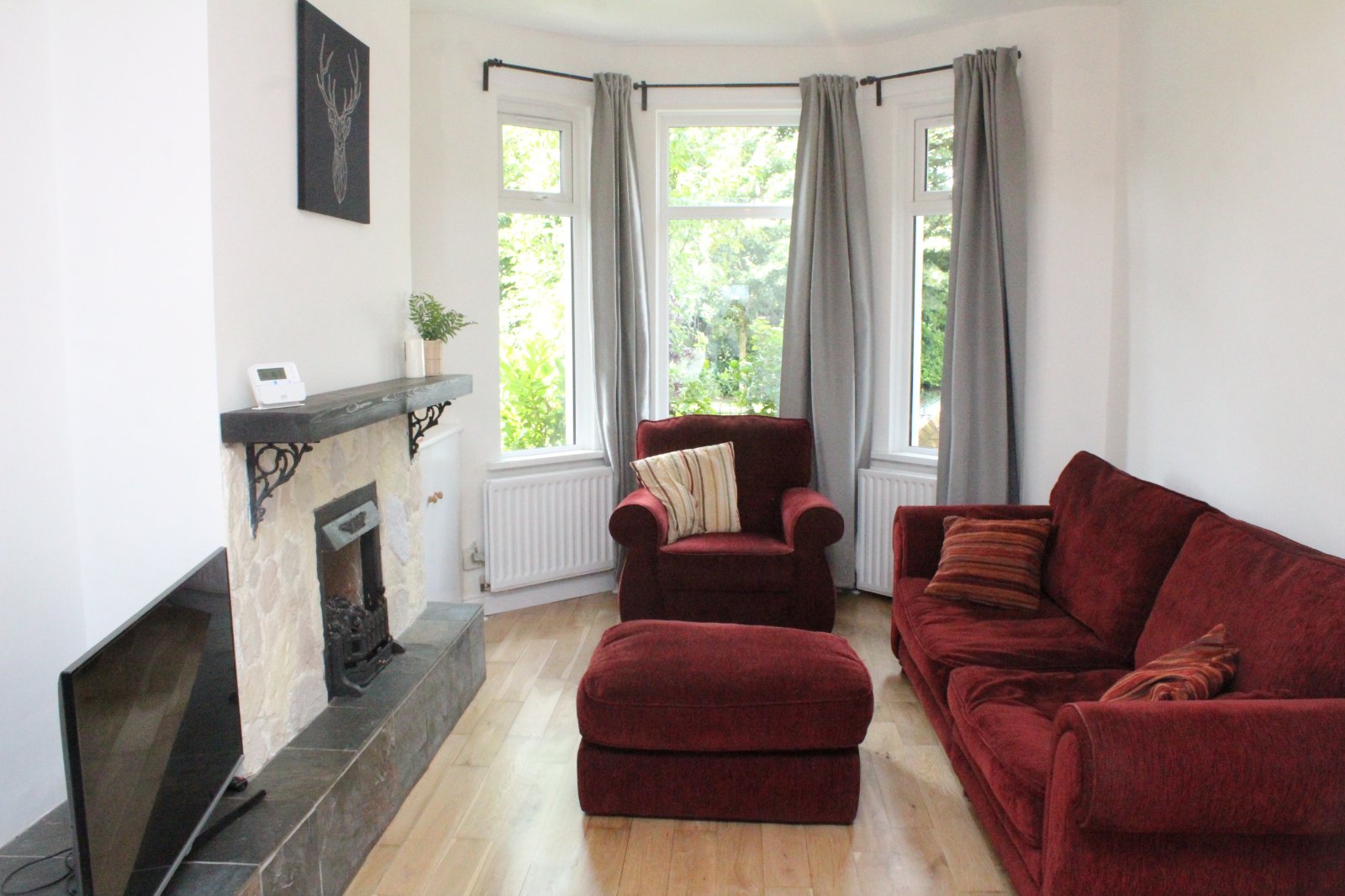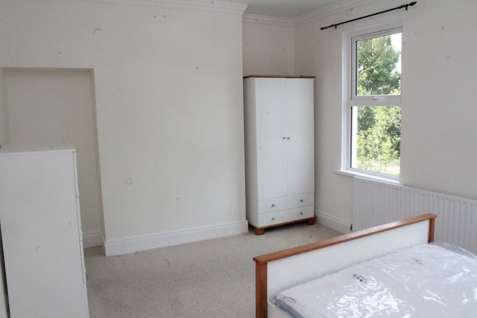 Double bedroom with sold wood flooring. Radiator.