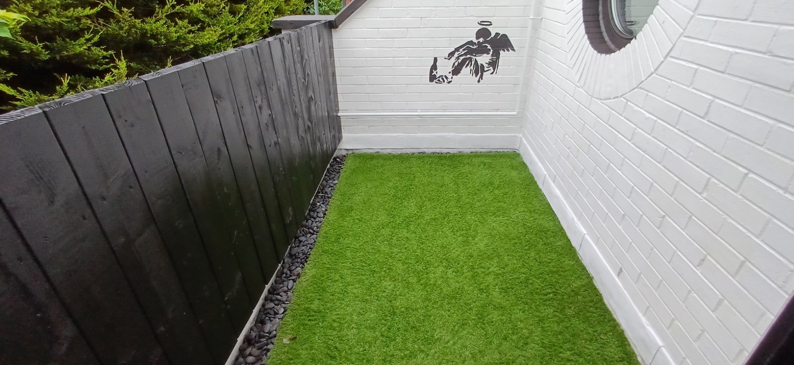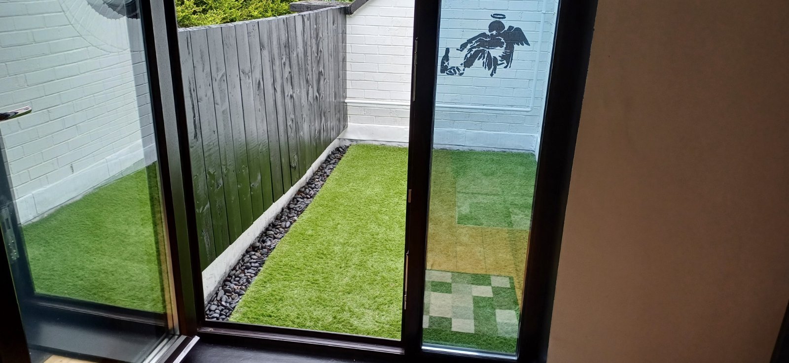 Private balcony/roof terrace accessed from Bedroom 2, with outside light and artificial grass.