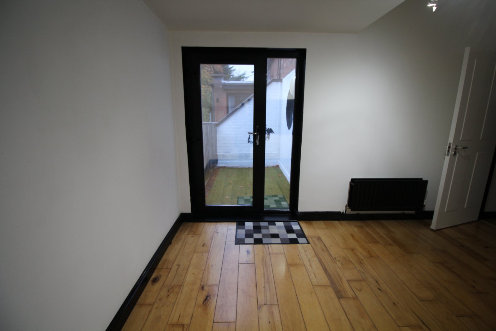 Solid wood flooring. Double glazed door to balcony with artificial grass and outside lighting.