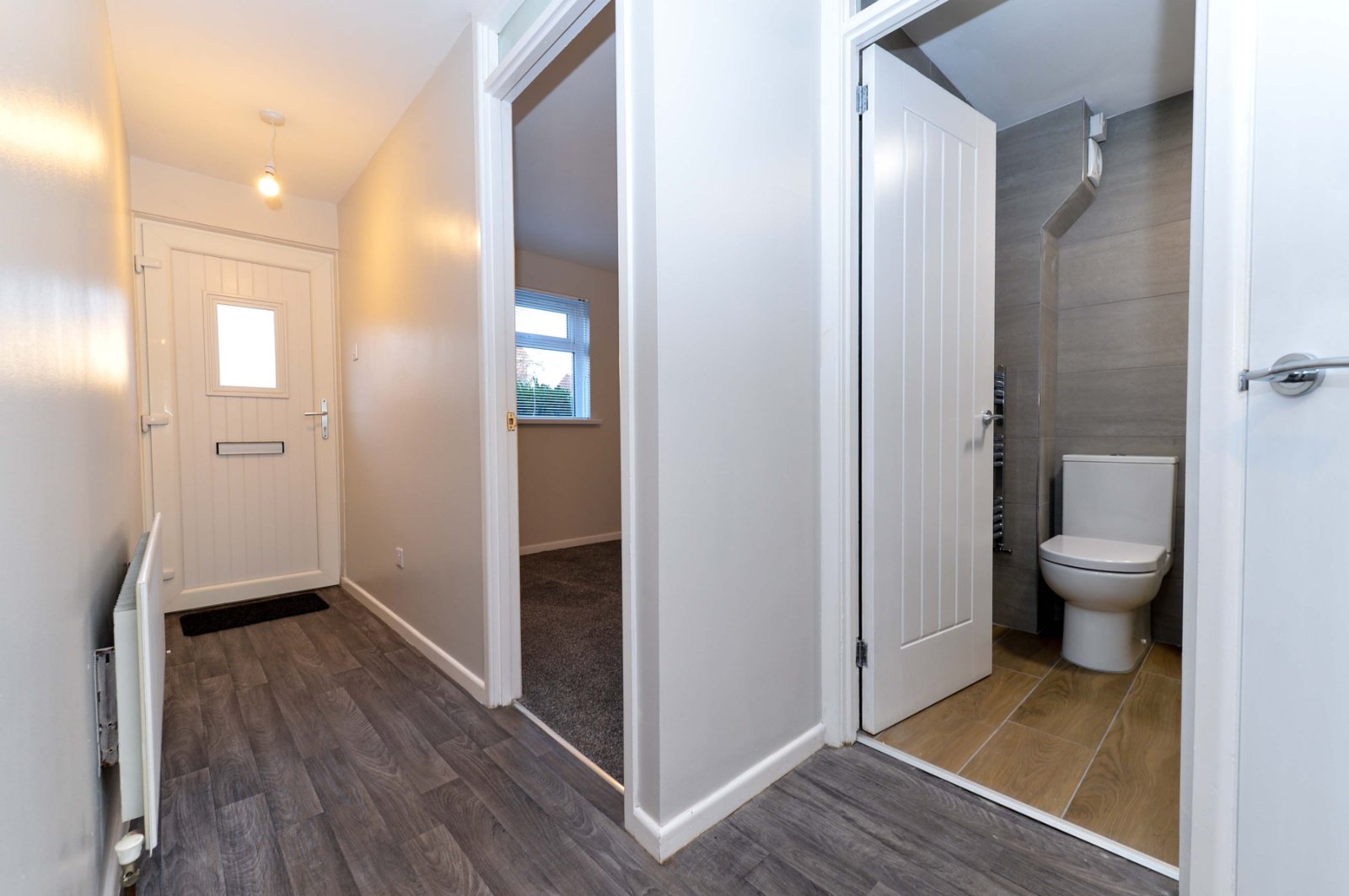 Upvc external door. Bright hallway with ample storage.
