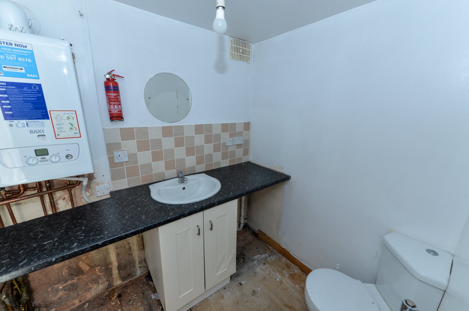 Wash hand basin with mixer taps, dual flush close coupled WC, plumbed for washing machine, gas boiler.