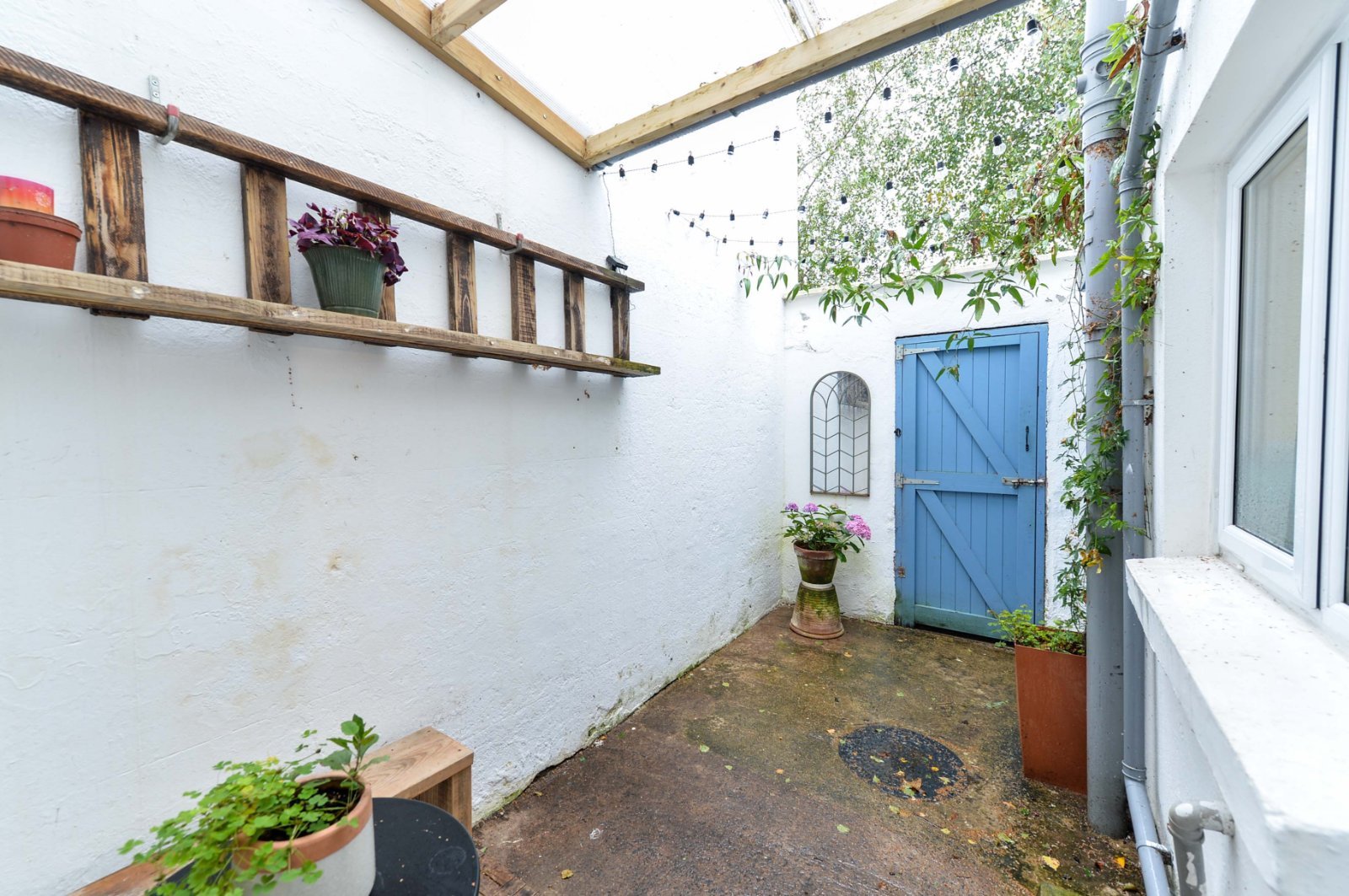 Enclosed yard to rear, partly covered, outside light and tap, garden store with light, power, plumbed for washing machine, gas boiler.
