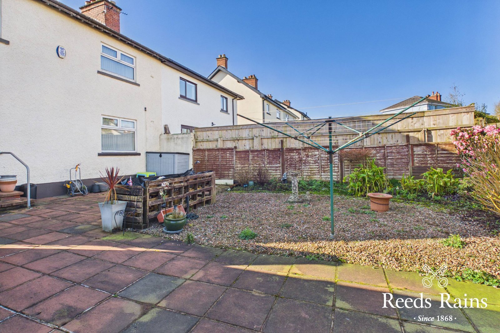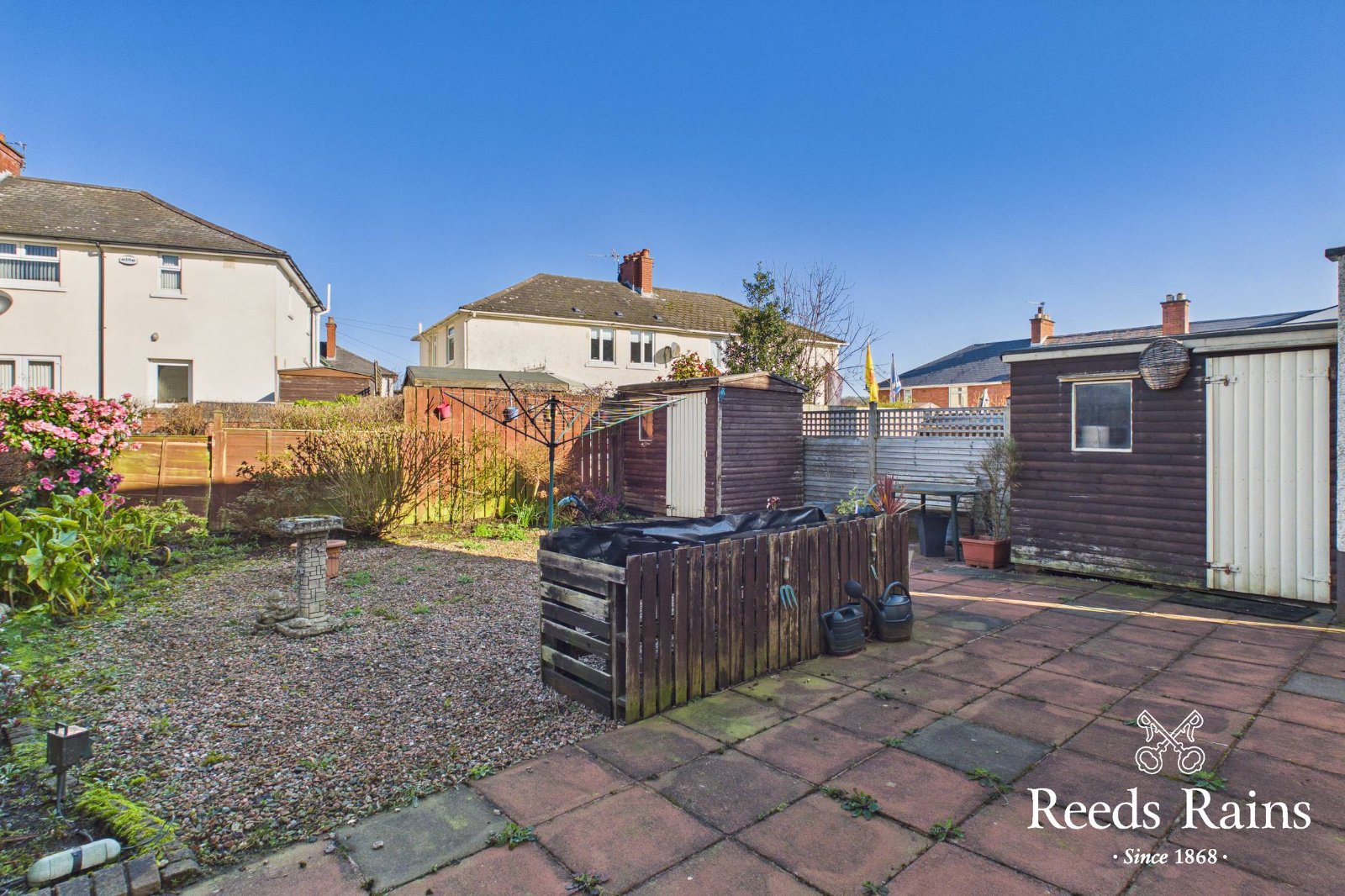 Paved garden to front.