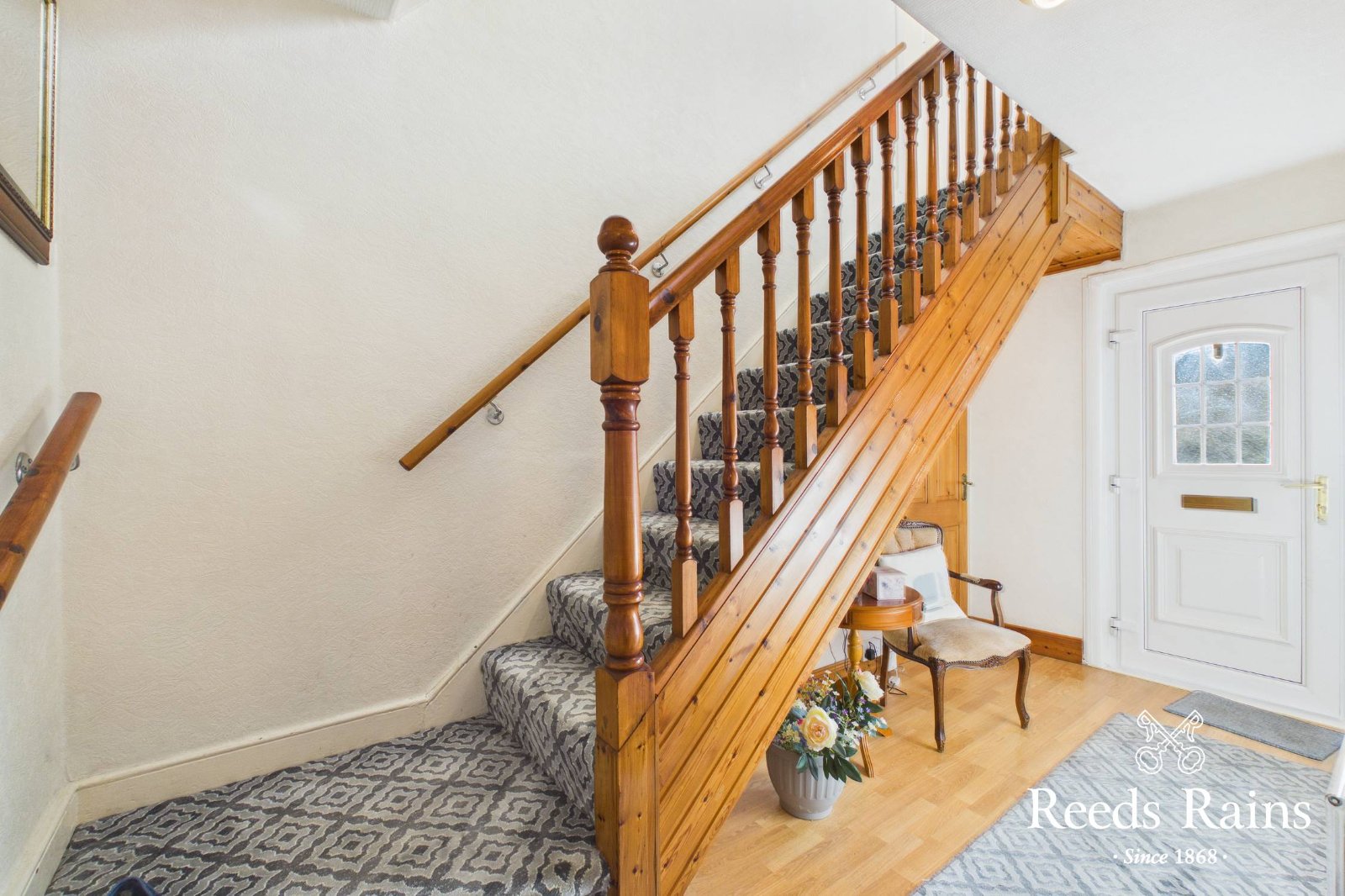 uPVC double glazed front door to entrance hall, laminate wooden floor, alarm panel.
