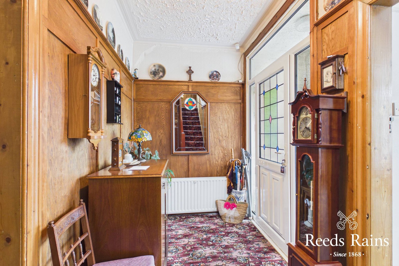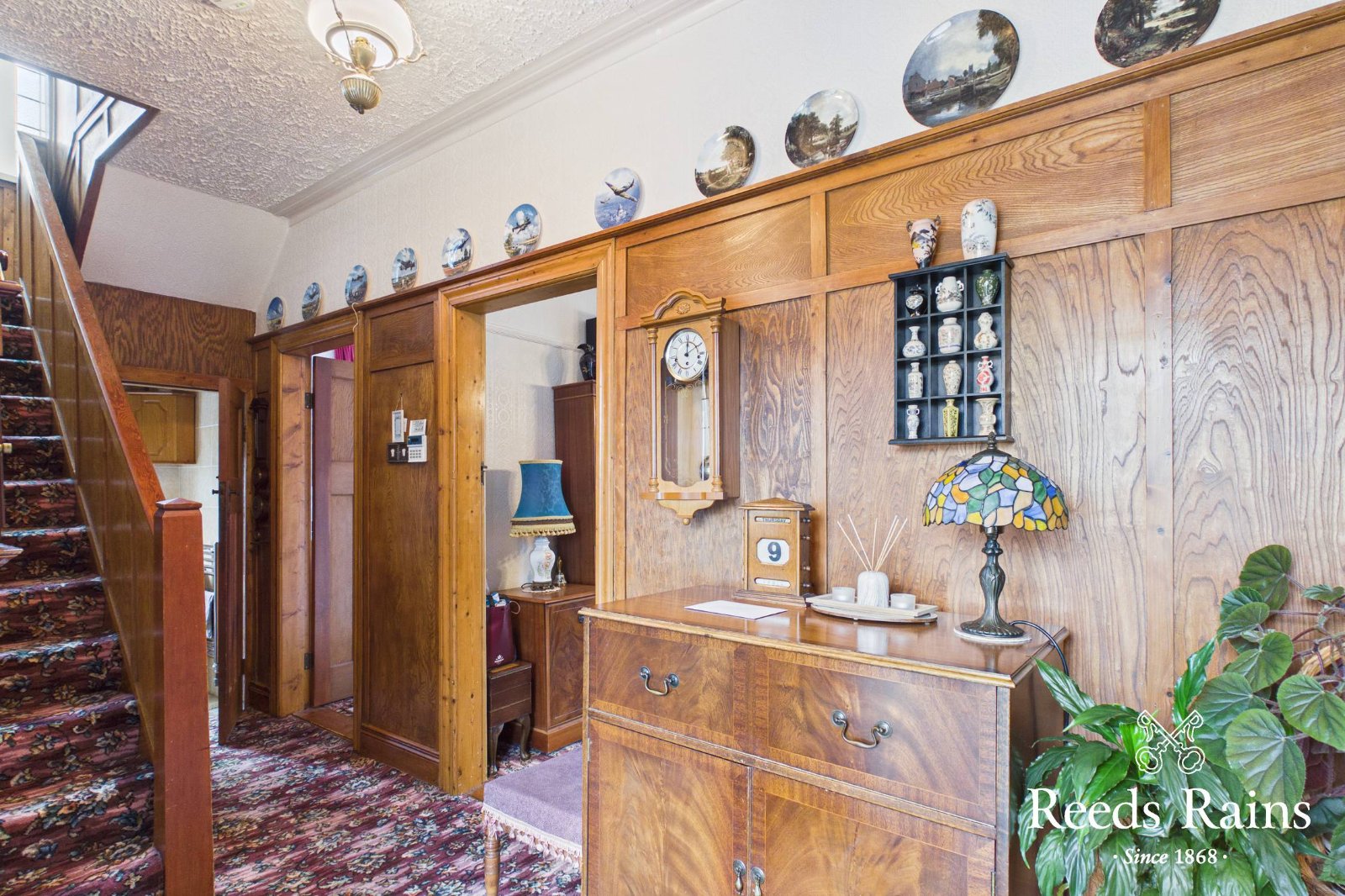 Covered porch, tiled entrance steps, uPVC double glazed front door to reception hall, wood panelled walls, cornice work.