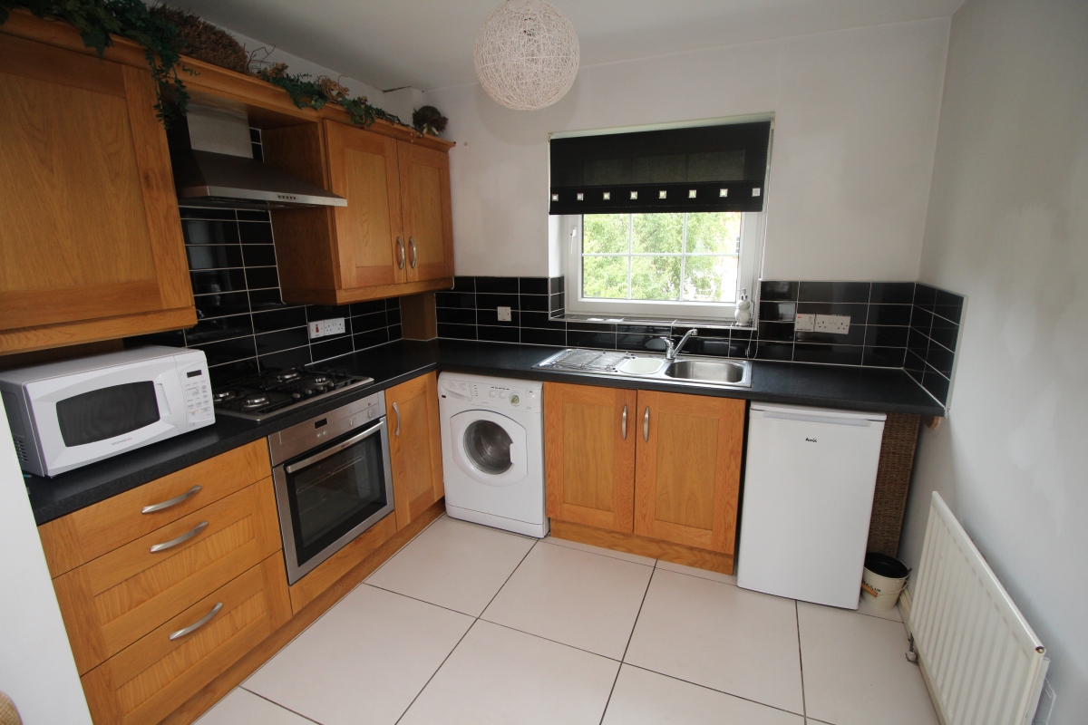 With an excellent range of wall and floor units. Built in single stainless steel oven and 4 ring hob. Stainless steel sink unit with chrome mixer tap. Appliances include washing machine and fridge/freezer. Wall and floor tiling