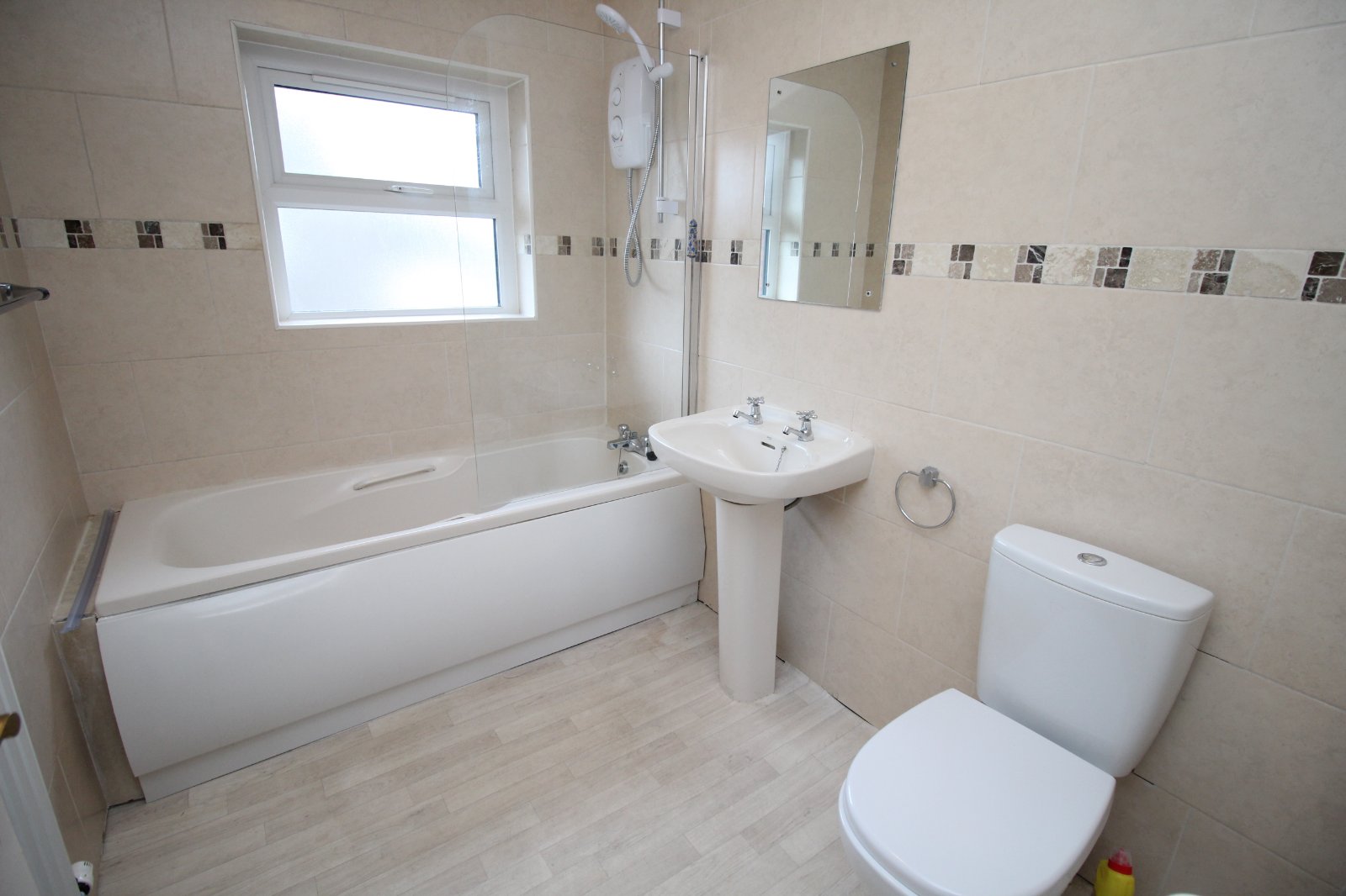 Consisting of a spacious modern kitchen with a range of high and low units, two well proportioned double bedrooms and a tiled bathroom with shower over bath.