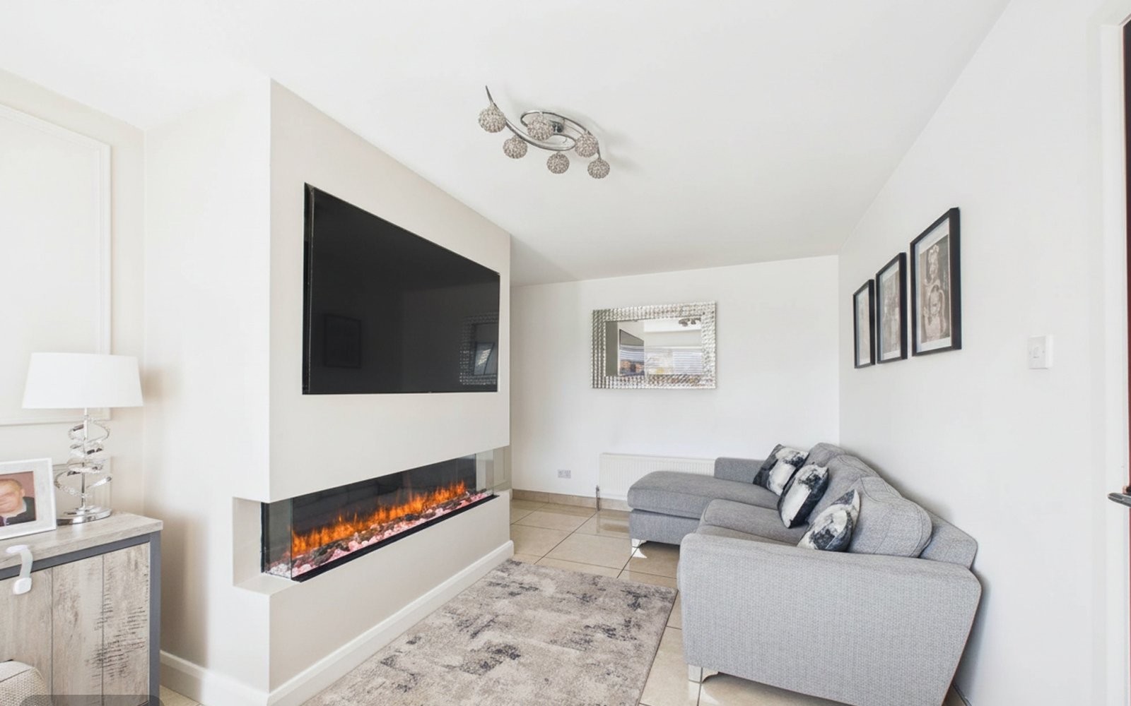 Naturally bright and spacious lounge complete with tiled flooring. Bespoke fitted 3 sided fireplace. Large bay window aspect to the front of the property.