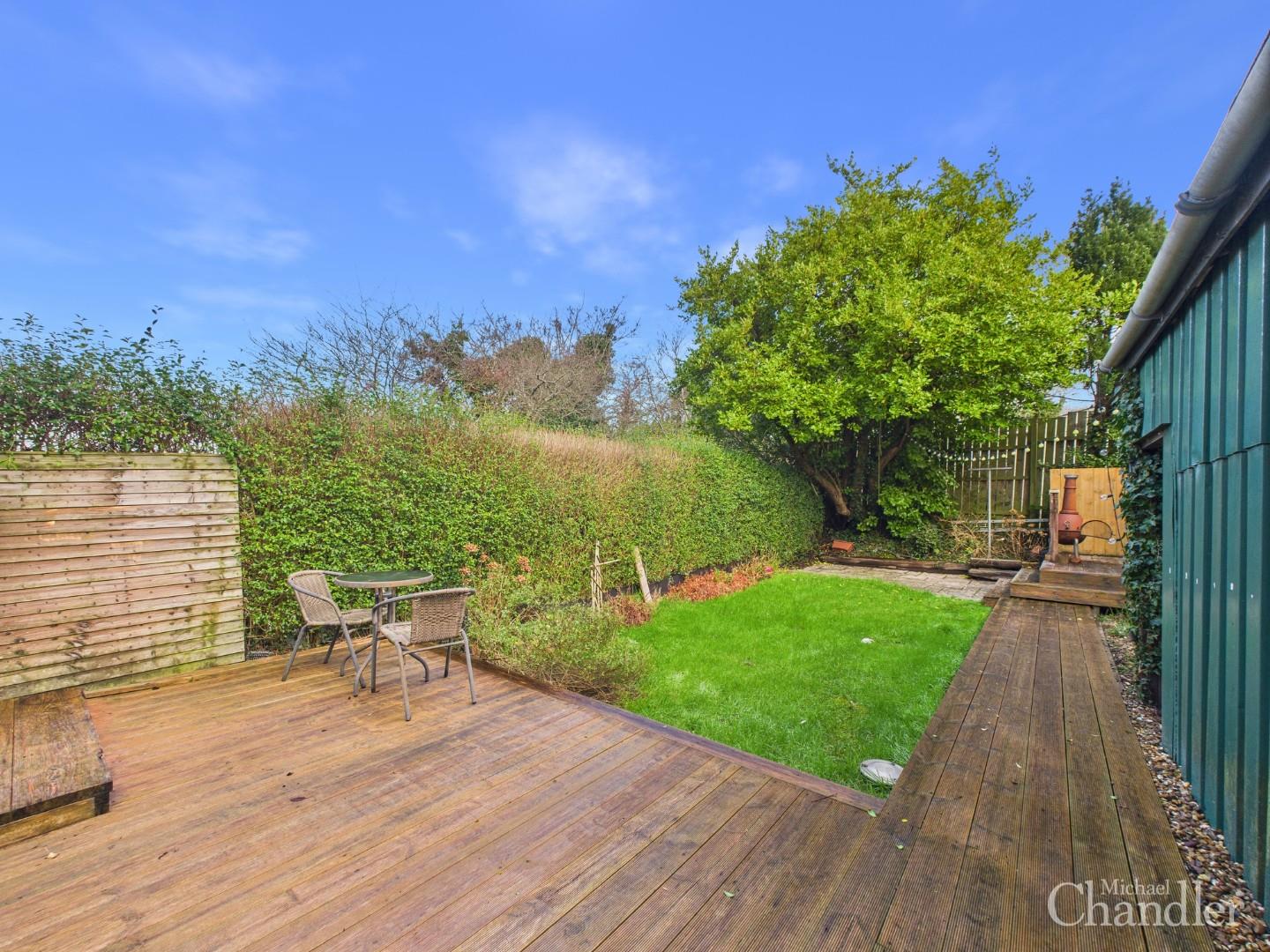 Outside, you will find a private enclosed garden, complete with a decked area and a well-maintained lawn, providing an excellent setting for summer evenings spent outdoors. Additionally, a garden shed offers practical storage solutions.