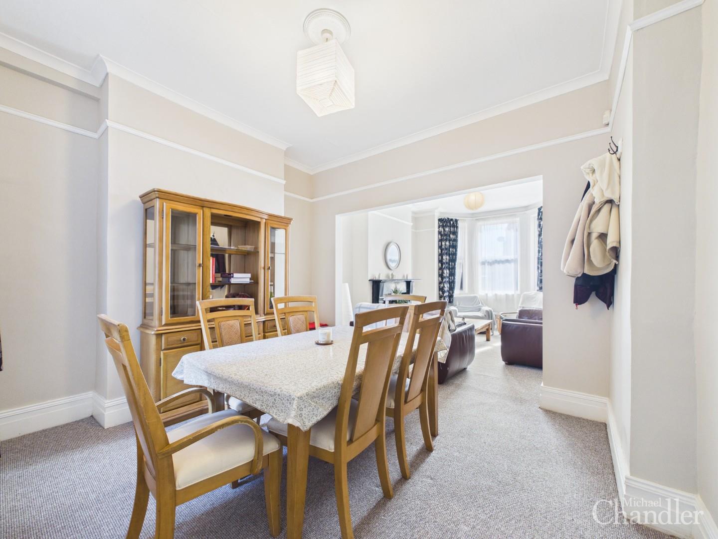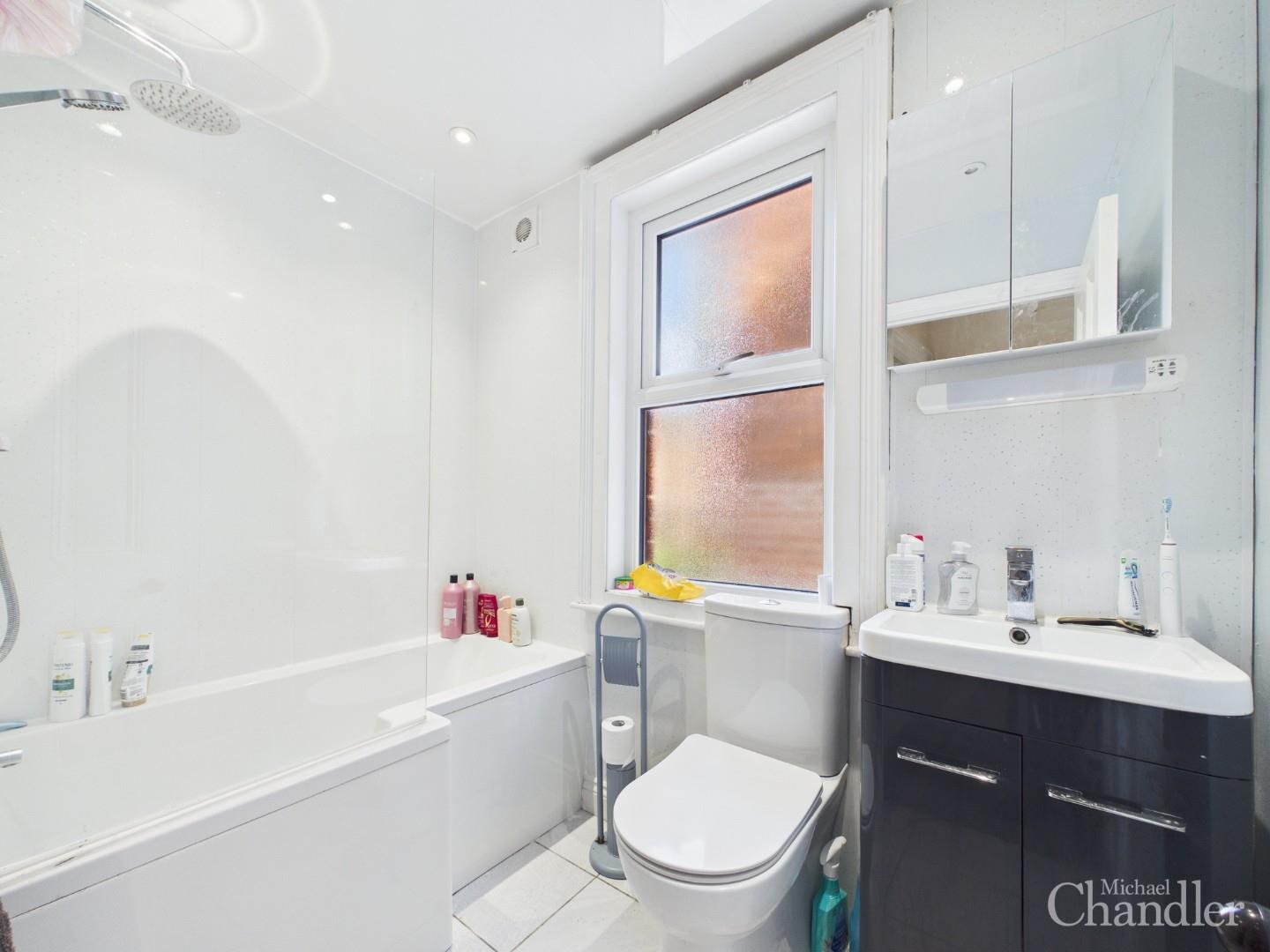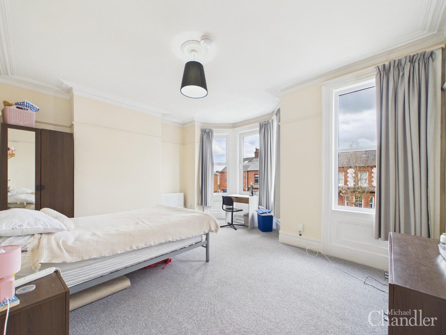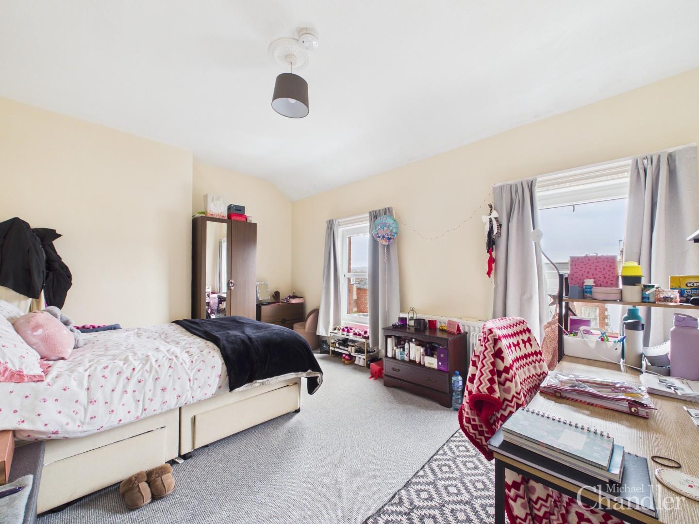 Upstairs, the property comprises five well-proportioned double bedrooms, each offering comfortable living space. Two of the bedrooms benefit from standout features, including a bay window and a feature fireplace, adding character and charm. The accommodation is further complemented by a contemporary bathroom with a stylish three-piece suite, an additional modern shower room, and a separate WC for added convenience.