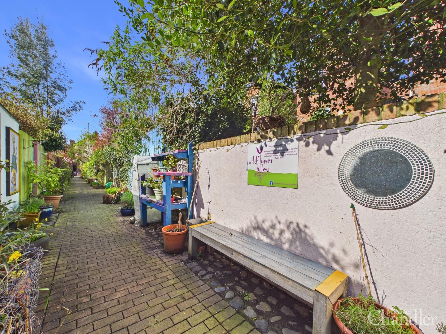 Externally, the front garden is laid in stones, providing a low-maintenance finish. To the rear, the property benefits from a private yard area with excellent storage facilities, as well as a spacious stone-laid garden. A notable feature is the direct access to Wildflower Alley, enhancing both accessibility and outdoor appeal.