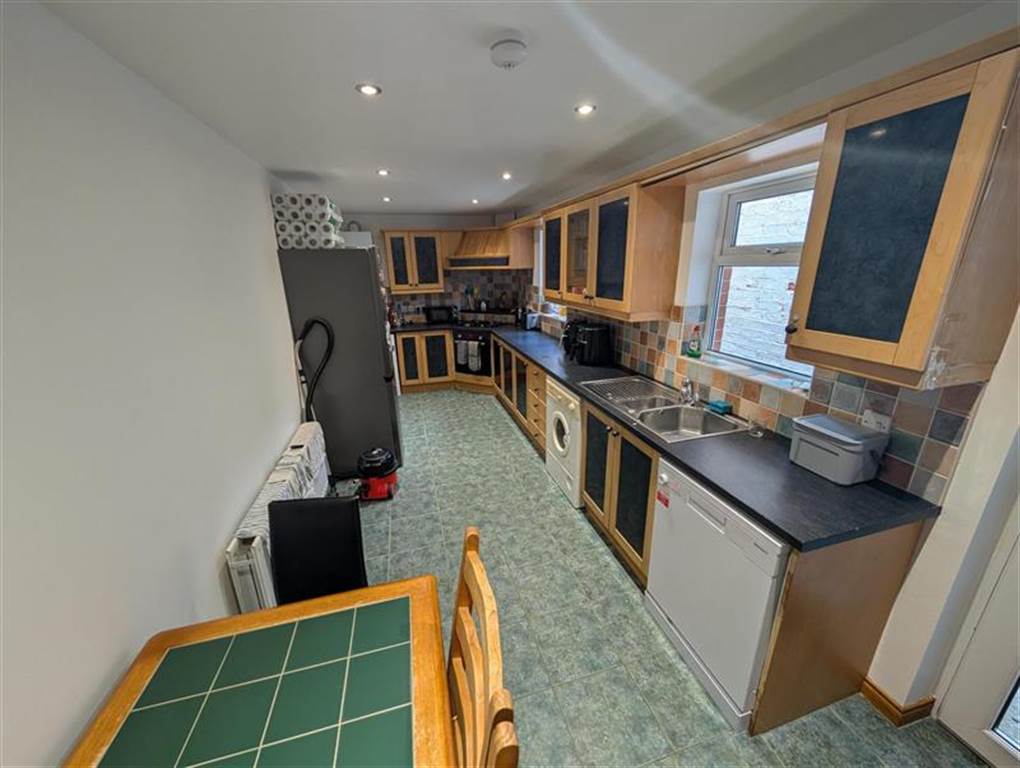 Range of high and low level units. One and a half tub stainless steel sink unit. Plumbed for washing machine. Gas hob and electric oven. Extractor hood. Gas boiler. Recessed lighting. Tiled floor with part tiled walls. Under stair storgae.