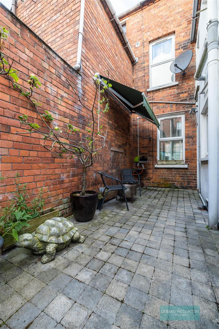 Walled forecout with pedestrian gate, to the rear is a lovely courtyard garden with space to sit and entertain