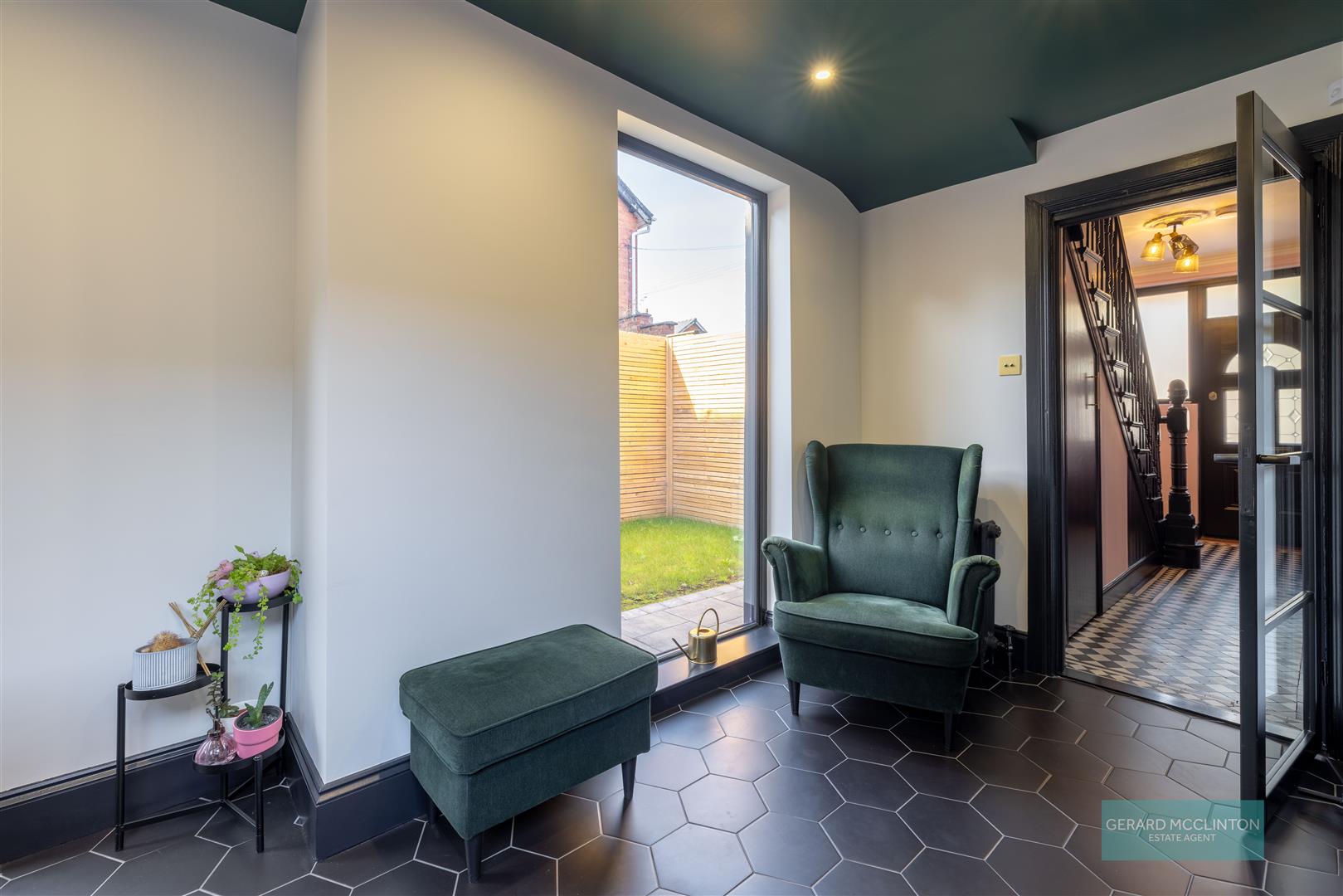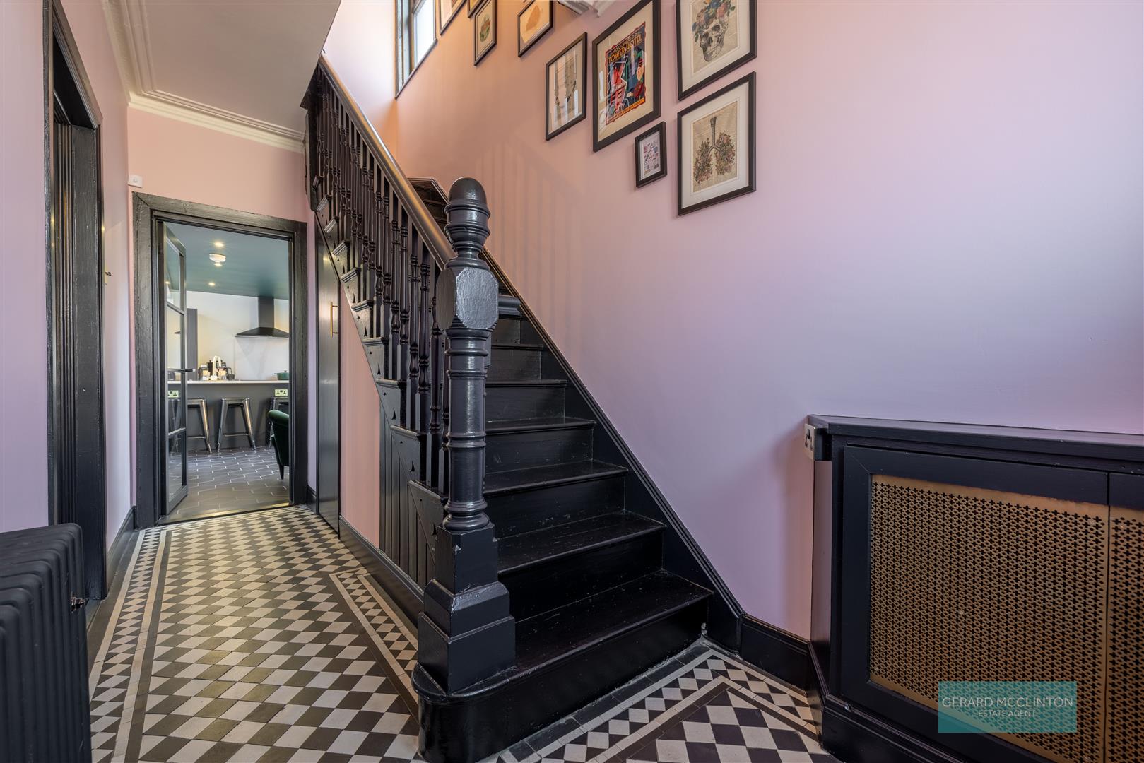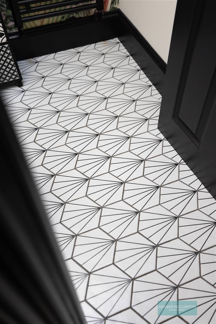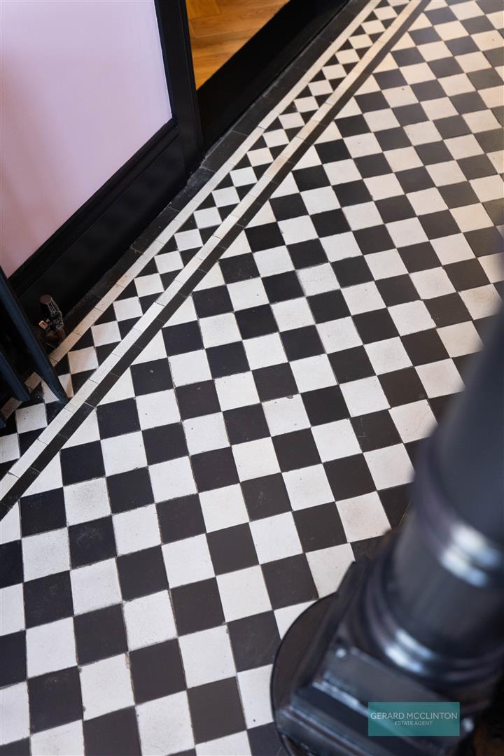 New composite double glazed door and window to front, installed approx 2021. Original black and white tiled flooring, staircase spindles and ceiling cornice. Newly installed antique style radiator. Storage under stairs.
