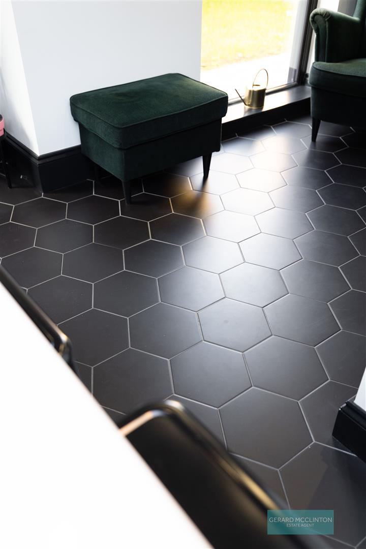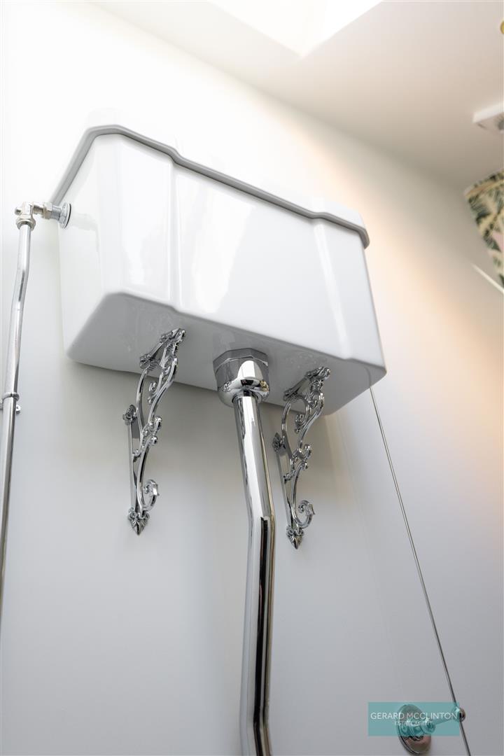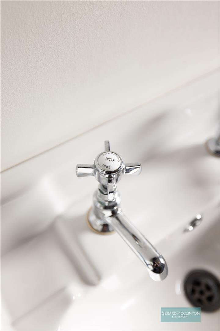 A very handy and stylish wc was also created and sits just off the utility room. Attractive tiled flooring, classic white sanitaryware includes an antique style wc, wash hand basin with modern conveniences such as a vertical heated towel rail, spotlights and extractor fan
