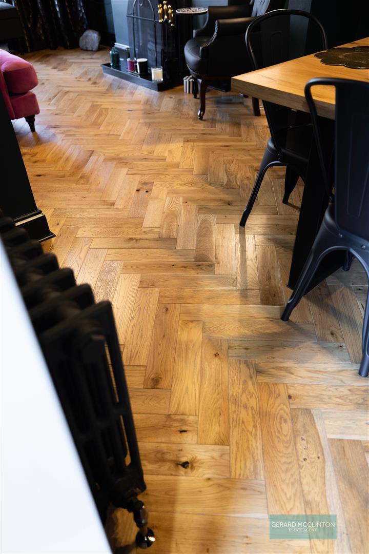 A stunning room with newly installed double glazed bay window to front, high quality engineered wooden flooring, original ceiling cornice, feature fireplace, recently installed to compliment the era and style of the property. This fireplace is operational. Newly installed antique style radiator, internal "Kingspan" insulation, modern glazed internal door and arch through to