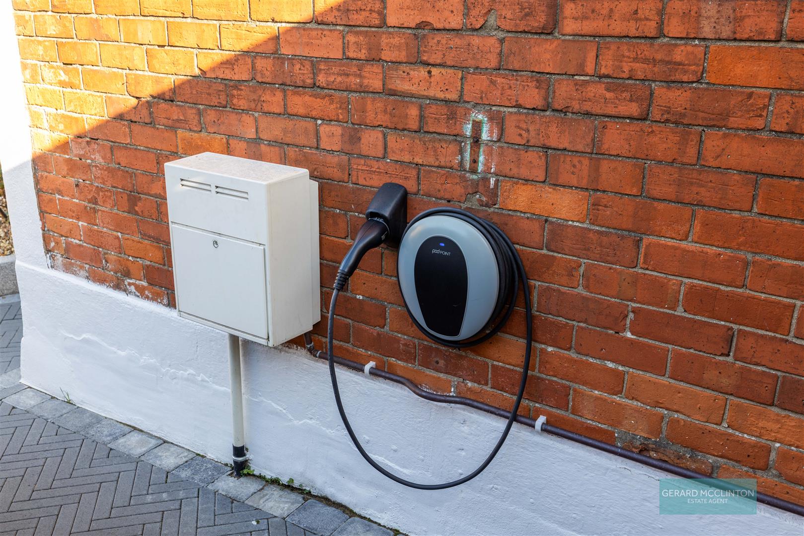 Newly laid paved driveway with pedestrian gate to rear garden.