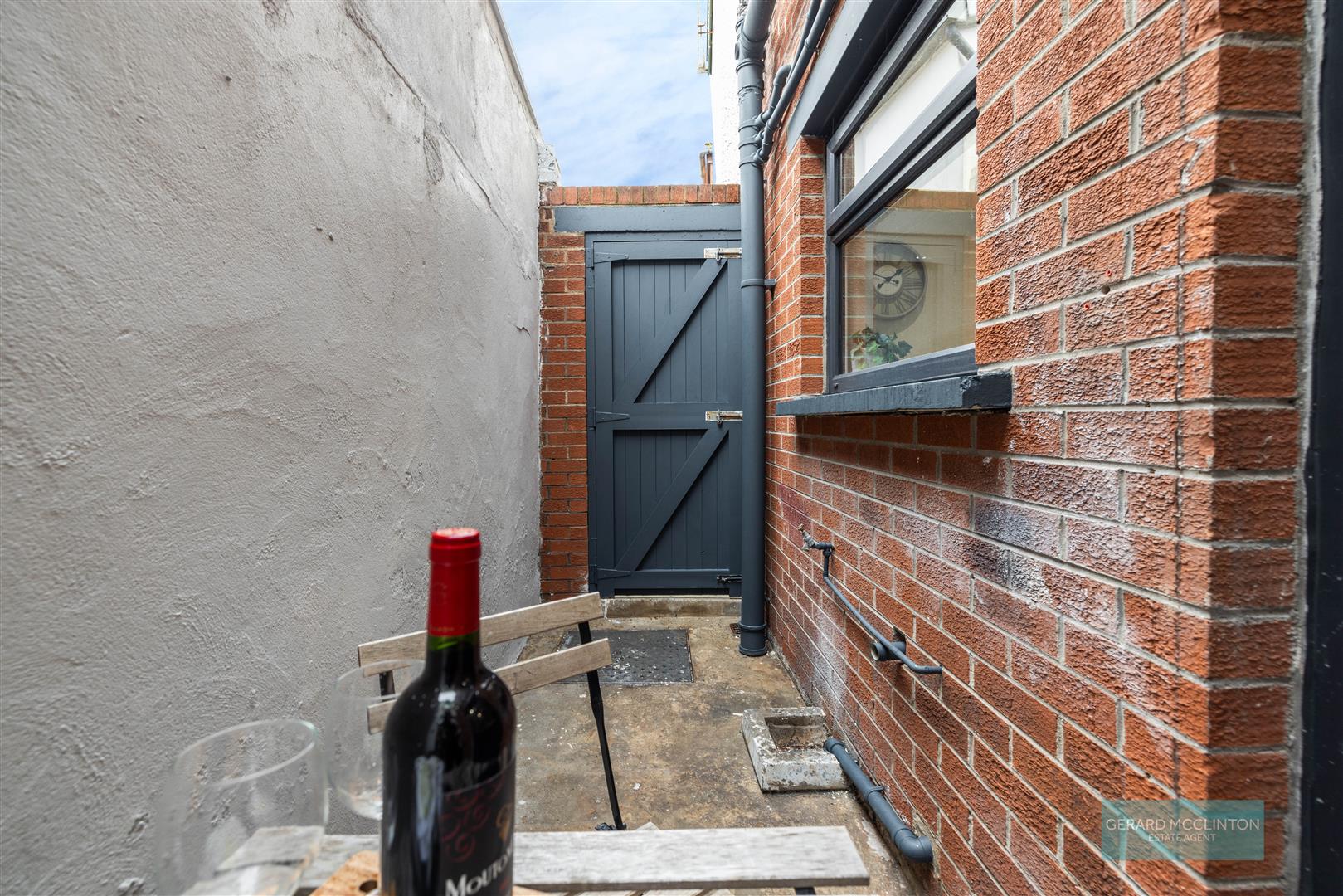Walled forecourt and enclosed rear yard with pedestrian gate and external watertap