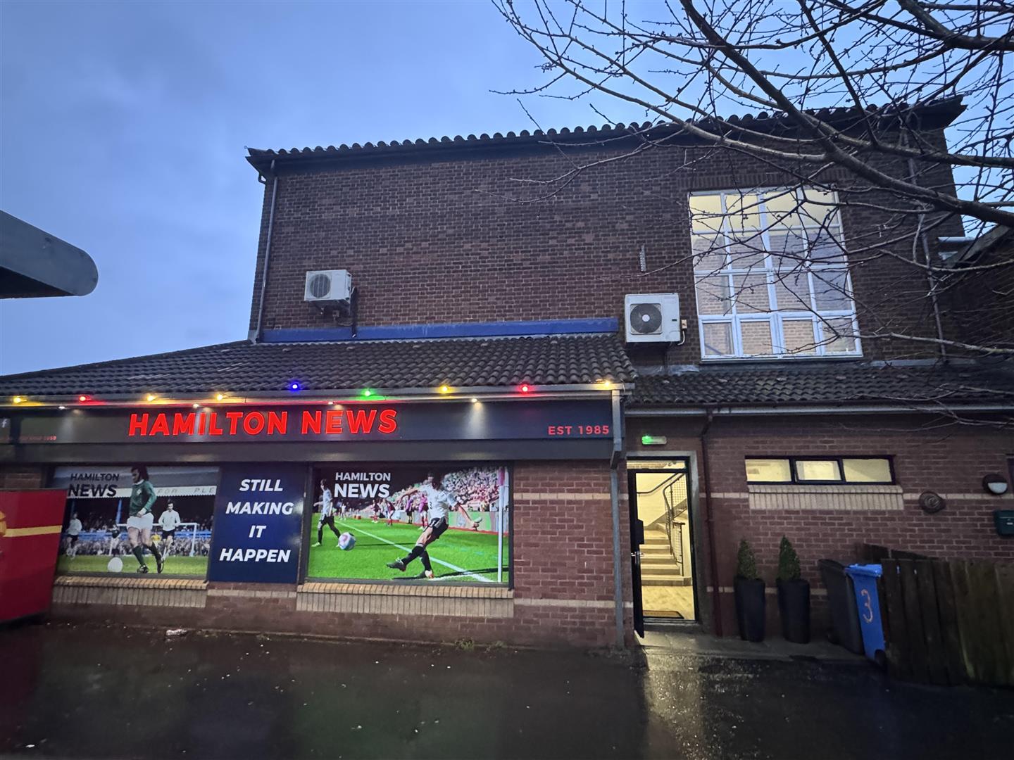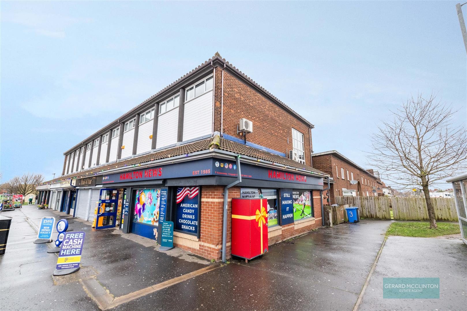 The access to the apartment is at the side of Hamilton News Agents, facing the bus stop.
