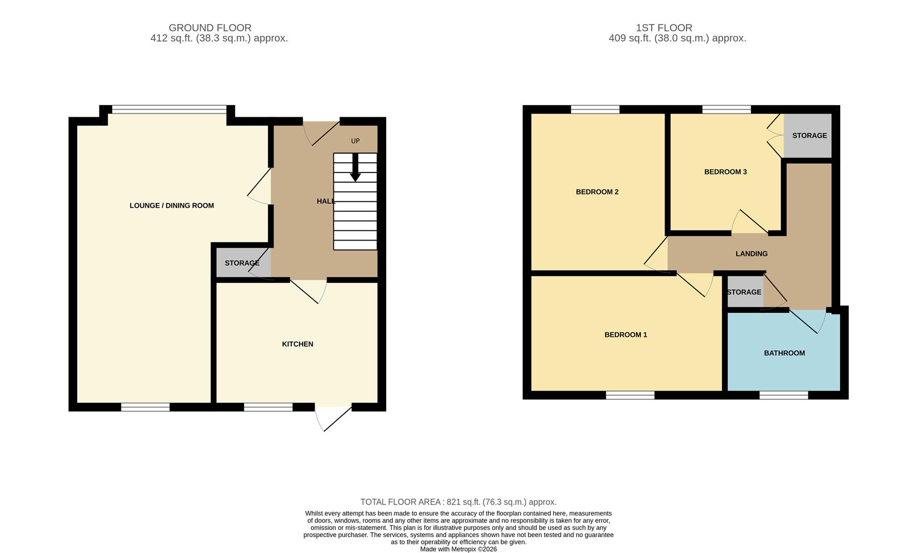 UPVC double glazed entrance door, upvc double glazed window to front, radiator, laminate wooden floor, chrome wall switches and sockets, double doors to storage cupboard, staircase to first floor