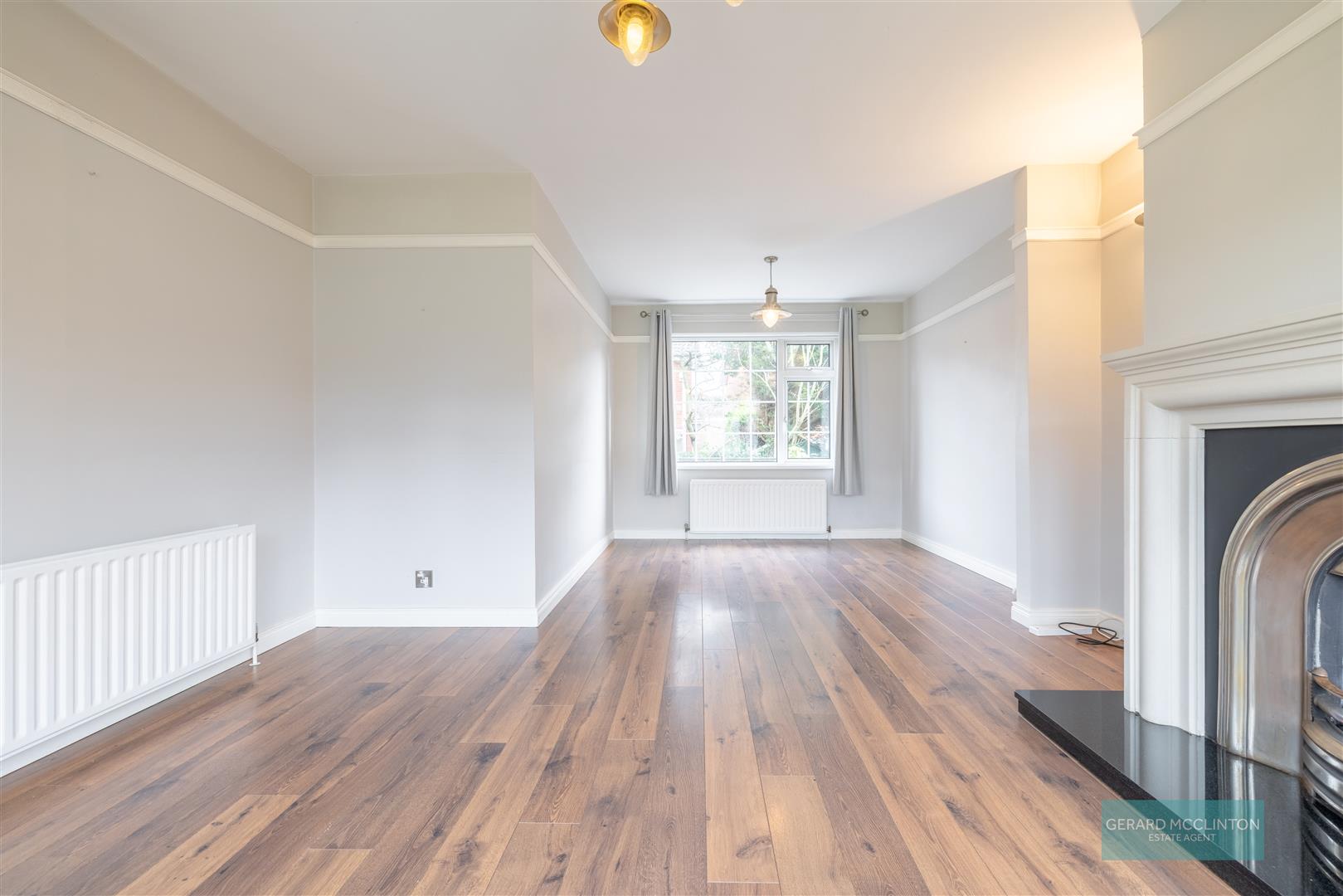 Upvc double glazed window to front and rear, 2 x radiators, laminate wooden floor, feature fireplace with gas fire inset, decorative picture rail, 2 x up lighters and 2 x ceiling lights, chrome sockets and wall switches